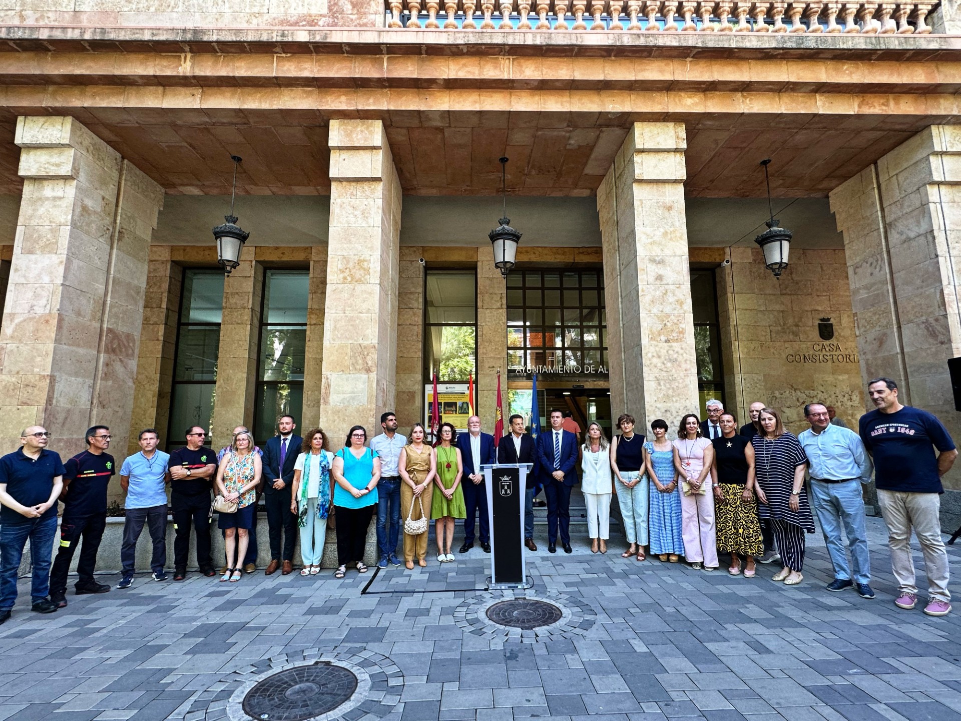 - Representantes del Ayuntamiento, la Diputación y la Junta de Comunidades, se han concentrado, este mediodía, en la puerta del Consistorio albaceteño para condenar los últimos asesinatos machistas, al tiempo que también ha habido una concentración en la puerta de la Subdelegación del Gobierno.