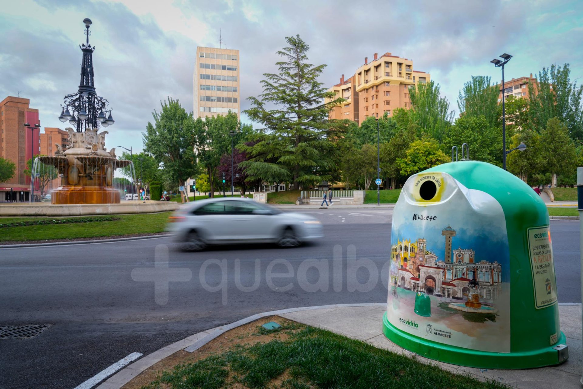 Un total de 33 contenedores de recogida de vidrio para reciclar lucen ahora más ‘guapos’ en la ciudad con una imagen de Albacete. Un diseño, realizado por el equipo de Ecovidrio, que muestra los lugares más emblemáticos de la ciudad, como el Depósito de la Fiesta del Árbol.