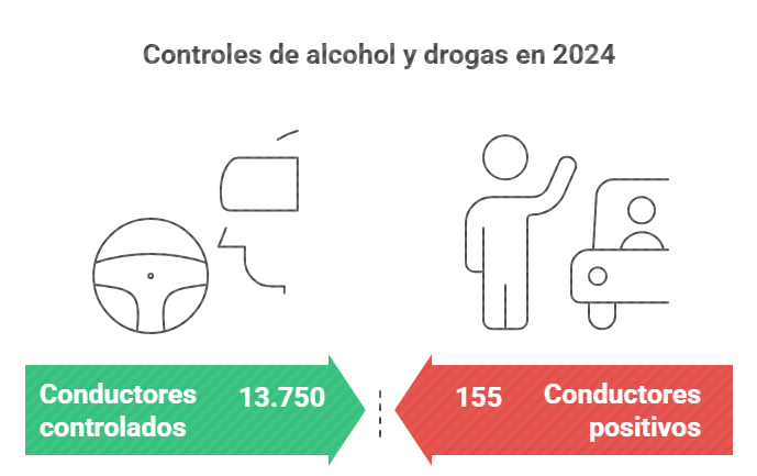 Además, a lo largo de todo el año realiza controles preventivos de alcohol y drogas a conductores, insistiendo en la ‘Tasa Cero’ de alcohol y de drogas cuando se va a conducir. De hecho, en 2024 se realizaron un total de 232 controles, sometiendo a las pruebas a 13.750 conductores, siendo positivos 155 de ellos.