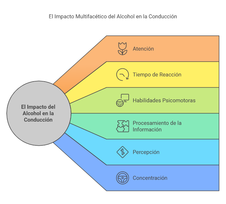 Es un hecho clínicamente comprobado que el alcohol modifica las capacidades del conductor, ya desde niveles inferiores a 0,5 gr/l. El deterioro afecta sobre todo a capacidades como la atención dividida, necesaria para atender a varias circunstancias al mismo tiempo, cosa que se da habitualmente mientras circulamos, a la capacidad de seguimiento de una trayectoria, al tiempo de reacción, a las habilidades psicomotoras, al procesamiento de la información, a las capacidades perceptivas y a la capacidad de concentración. Y algunos factores como la fatiga, el sueño y la tensión nerviosa, empeoran todavía más la respuesta del individuo que ha consumido alguna bebida alcohólica.