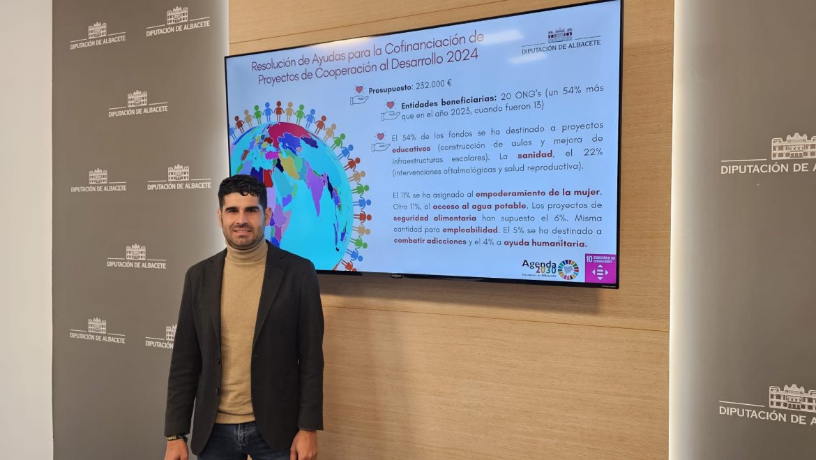 En una rueda de prensa ofrecida este jueves en la ‘Casa Provincial’, el diputado de Servicios Sociales y coordinador del Área Social de la Diputación de Albacete, José González, ha presentado la Resolución de la Convocatoria de Ayudas a Proyectos de Cooperación Internacional que la institución ha desarrollado este 2024. Ayudas que suman un total de 232.000 euros beneficiando a 20 entidades con proyectos que buscan mejorar las condiciones de vida en diferentes partes del mundo.