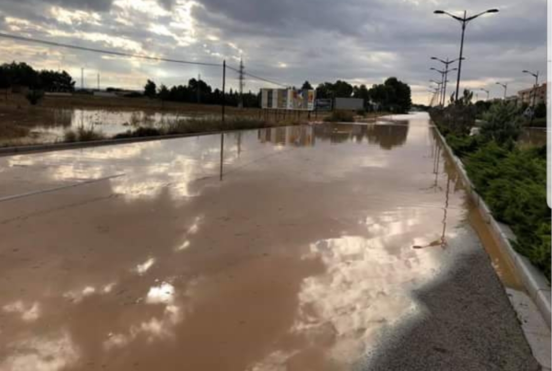 Las fuertes lluvias de ayer han provocado inundaciones este lunes por el acceso a Albacete por la carretera de Valencia, que en este momento está cortado.