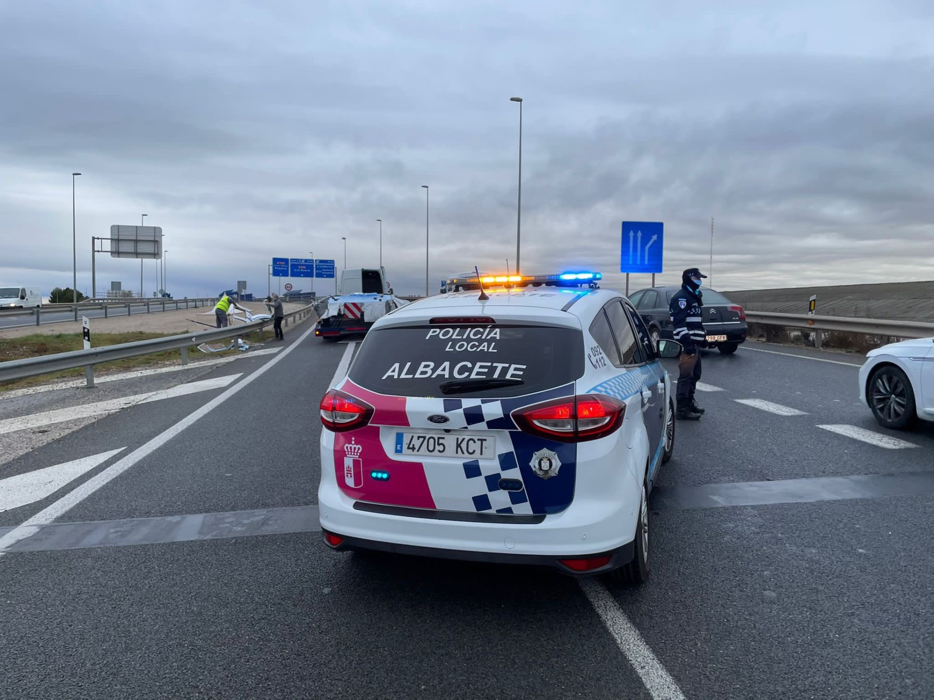 La Policía Local de Albacete ha informado este viernes de un curioso suceso que les ha obligado a realizar cortes al tráfico en la vía de acceso a las autovías de Madrid y Valencia, por la carretera que sigue hasta Requena, en el puente sobre Albacete.