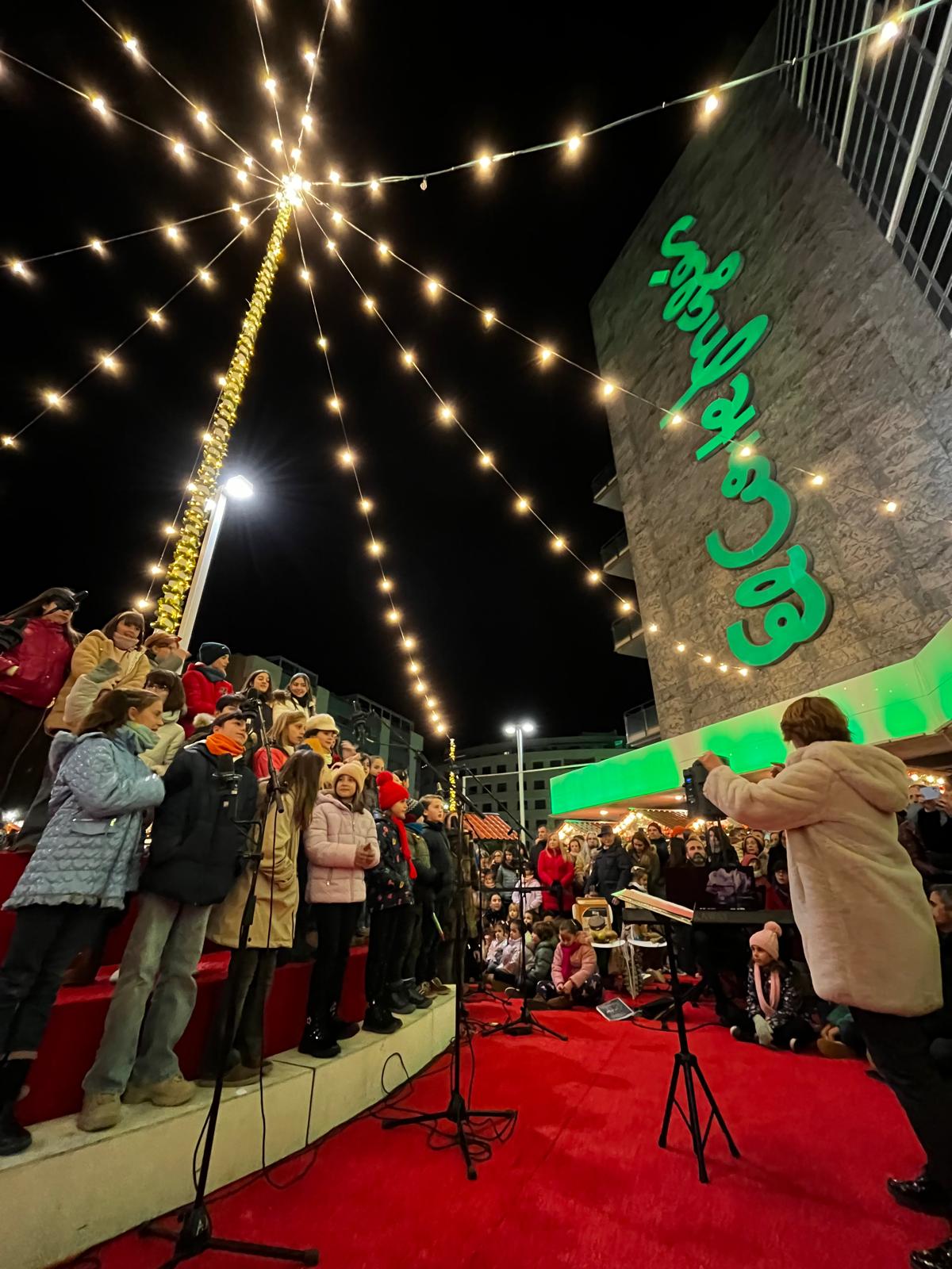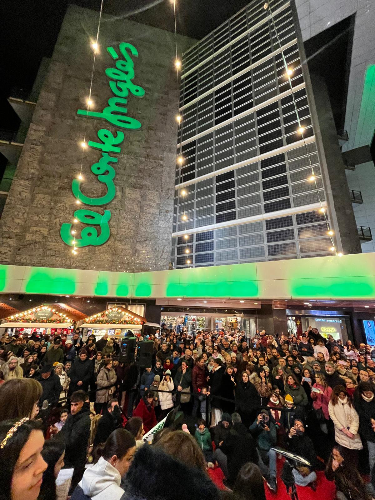 Los tres grupos que forman el Taller Coral de la Universidad Popular: coro Infantil “Peques” (niños/as de 4 a 8 años), coro Infantil (niños/as de 8 a 12 años) y coro juvenil (chicos/as de 12 años en adelante); participaban hoy en un concierto de villancicos y música navideña para inaugurar el encendido de las luces de “El Corte Inglés”.