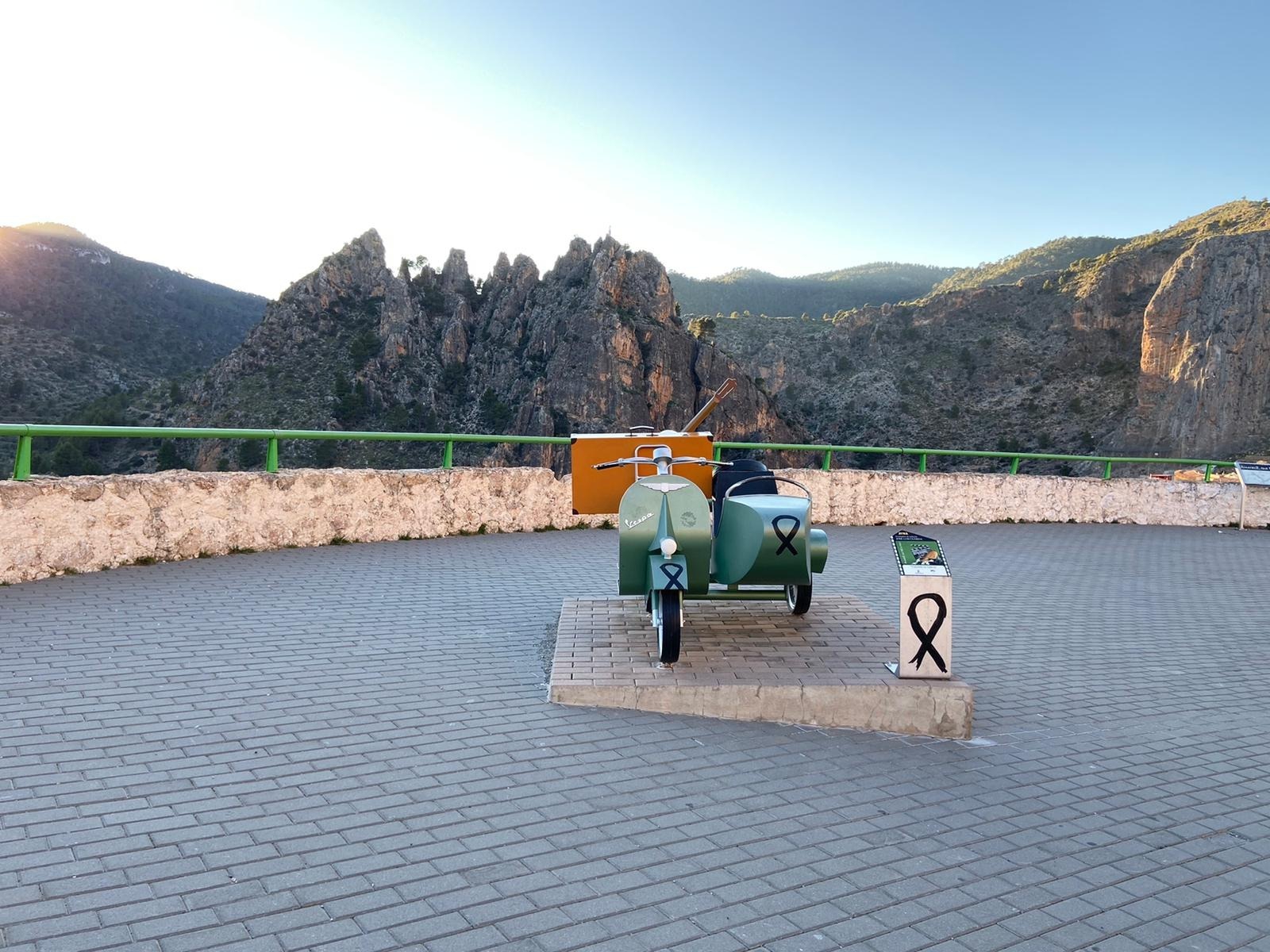 En Ayna, en el sidecar que recuerda al film, han colocado hoy un crespón negro en señal de duelo por la pérdida del director albaceteño.