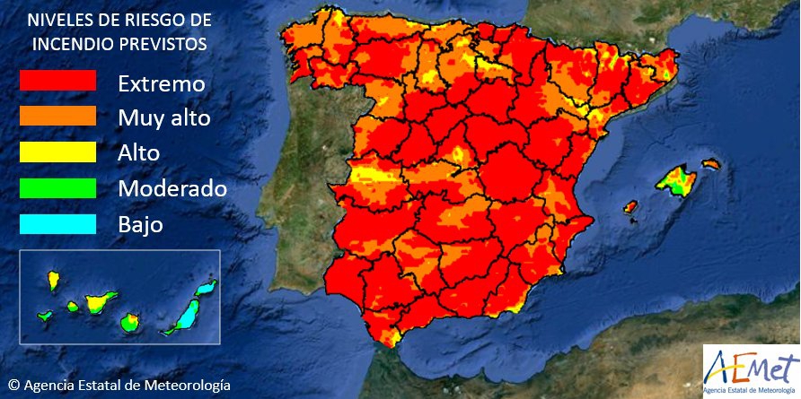 Preocupante el mapa que ha publicado la AEMET sobre este riesgo en nuestro país, por lo que hay que extremar las precauciones a este respecto.