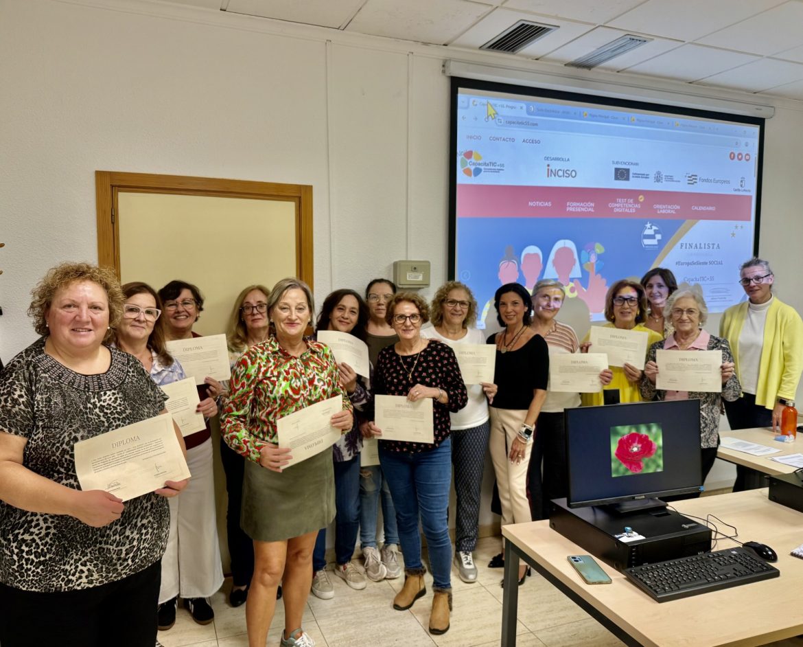 La concejala de Mujer e Igualdad, Gala de la Calzada, ha clausurado uno de los cursos CapacitaTic+55 que se ha impartido en el Centro Sociocultural de Parque Sur