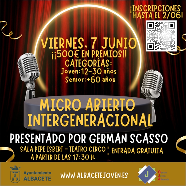 La concejala de Juventud ha explicado que el evento se celebrará en la Sala Pepe Isbert del Teatro Circo el próximo 7 de junio, de 17:30 a 19:30 horas, con entrada gratuita hasta completar aforo, presentada por el actor y cantante albaceteño German Scasso.
