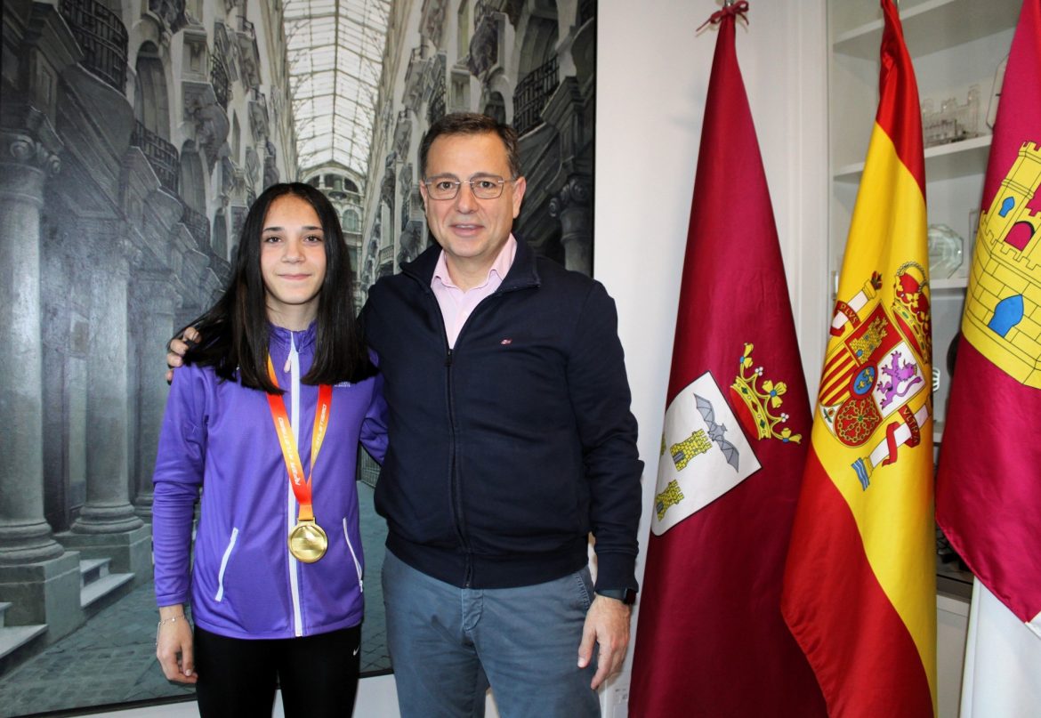 El alcalde de la ciudad, Manuel Serrano, ha felicitado a la joven deportista albaceteña Celia Moya Avendaño, del Club Atletismo Albacete-Diputación, por su destacadísima actuación en el Campeonato de España Individual Sub-16 Short Track celebrado recientemente en Salamanca, donde se proclamó campeona de España en la modalidad de 60 metros vallas, con una marca de 8.65 con la que además ha hecho historia en el mundo del atletismo.