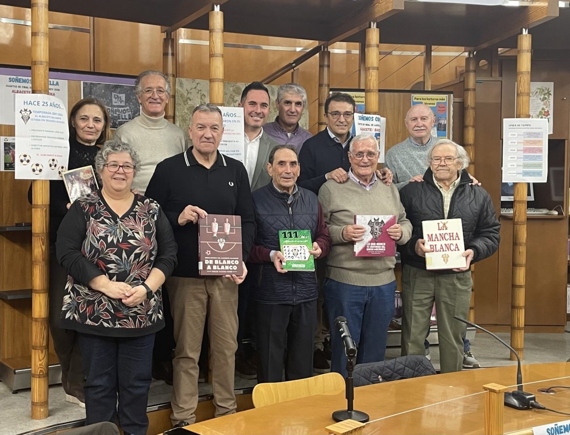 El concejal de Educación, Pascual Molina, ha asistido en la biblioteca de los Depósitos del Sol a un encuentro con veteranos del Albacete Balompié dentro de los actos del 25 aniversario de la puesta en marcha de esta biblioteca.