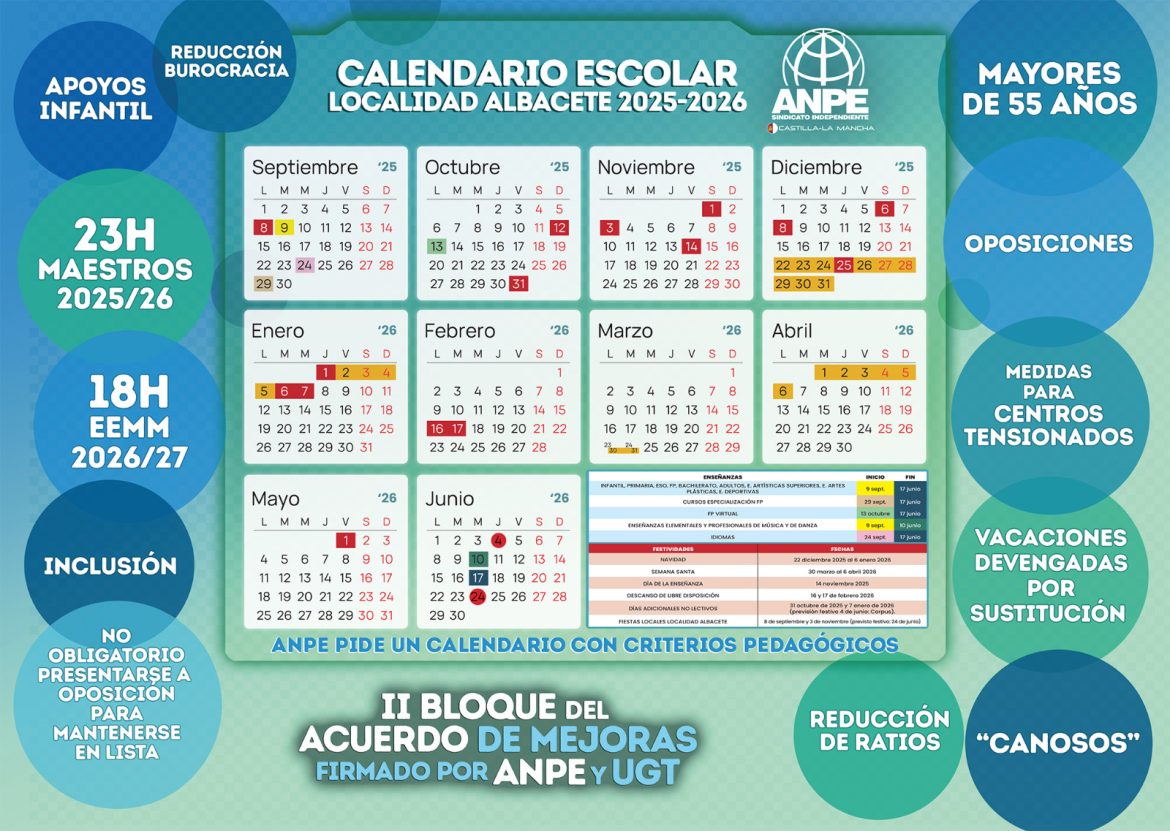 Finalmente, el curso escolar en la ciudad de Albacete comenzará el 9 de septiembre y sólo se dará a la Feria uno de los dos días de festivos locales, según ha podido confirmar Masquealba.