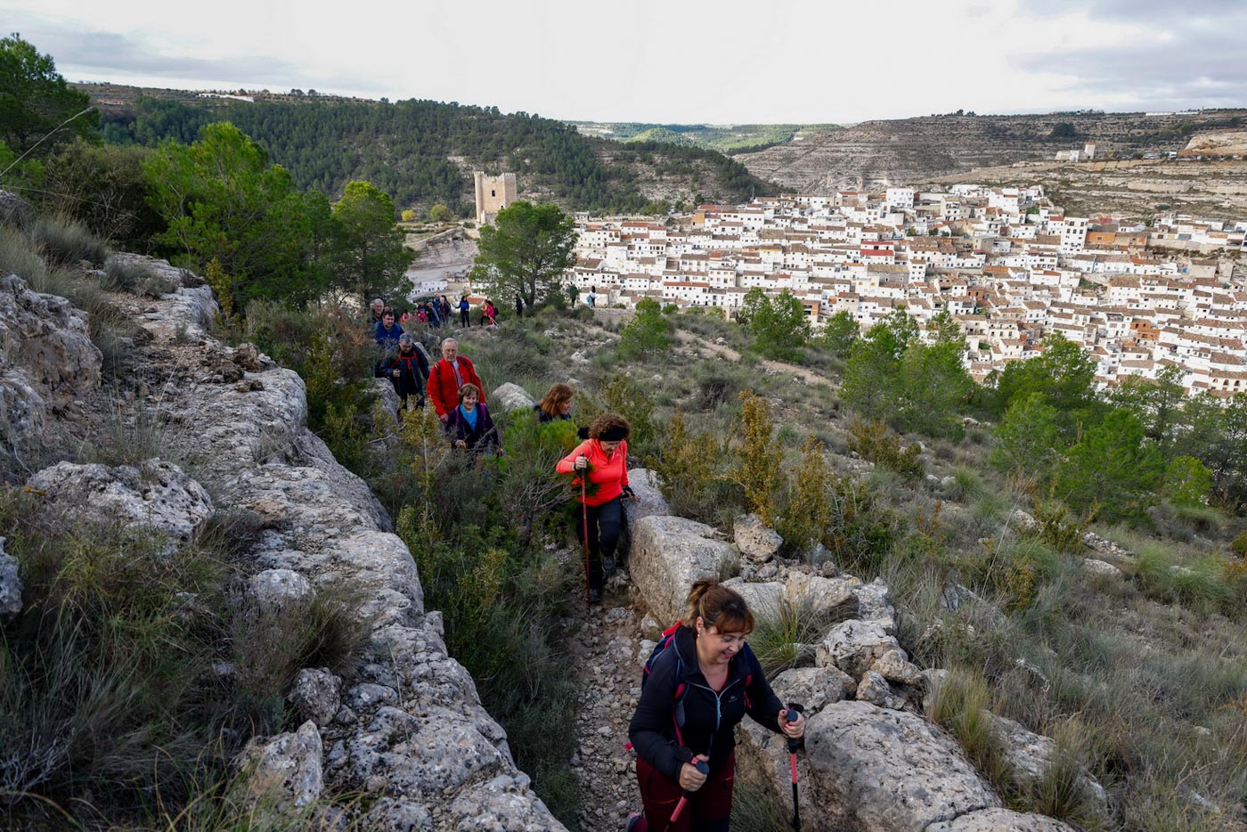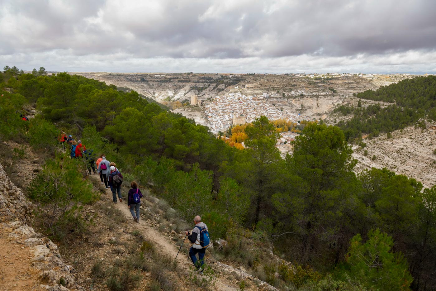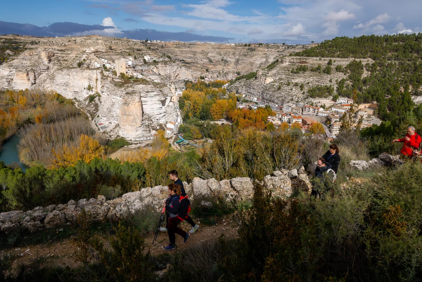 Ya el domingo, otros 50 participantes distintos visitarían Alcalá del Júcar, para realizar la ruta “Senderismo Entrebarrancos”. Una prueba que cuenta con un recorrido circular, de catorce kilómetros de distancia, con una dificultad técnica alta y unas cinco horas de duración. Les recibiría el alcalde de esta localidad, Juan Pascual Muñoz, junto a alguno de sus concejales quienes les acompañarían durante el trayecto. Sobre las 9 de la mañana, con el cielo cubierto pero sin lluvia, la ruta partía desde la Playeta, uno de los puntos de referencia de esta localidad, que forma parte de la Red de los Pueblos Más Bonitos de España.