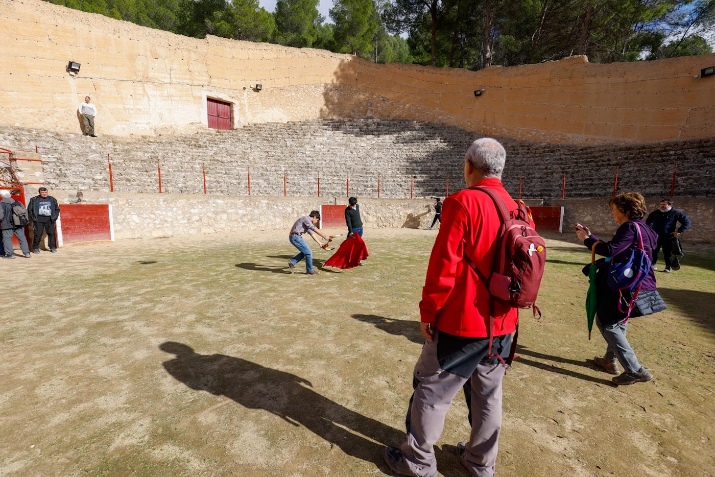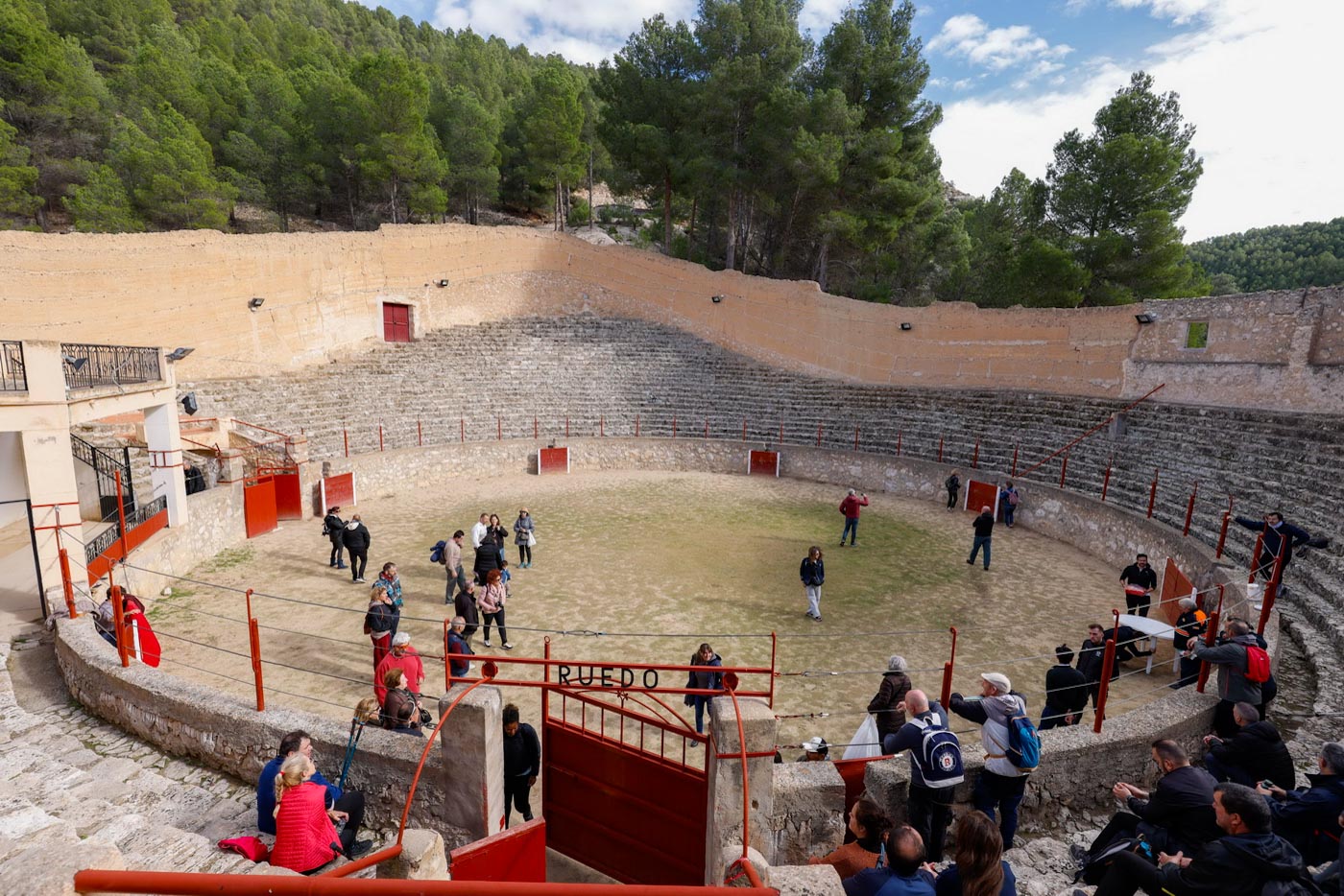Aquí ya descenderían a Alcalá del Júcar por la mítica “Senda de las Zetas”, de aproximadamente 1,2 kilómetros de bajada zigzagueante sin perder de vista el Casco Histórico de Alcalá del Júcar y su imponente Castillo, hasta llegar así de nuevo a la Playeta, y desde aquí, visitar la plaza de toros de Alcalá del Júcar, de finales del siglo XIX siendo una de las más antiguas de España. La construcción se realizó sobre la ladera de una colina, su forma irregular la hacen única en su estilo, construida con tapial y consiste en hacer un encofrado de cal, barro, cantos y paja. Aquí pudieron disfrutar, gracias de nuevo al Ayuntamiento de Alcalá, un rico moje y atascaburras, para concluir a lo grande esta fantástica ruta.