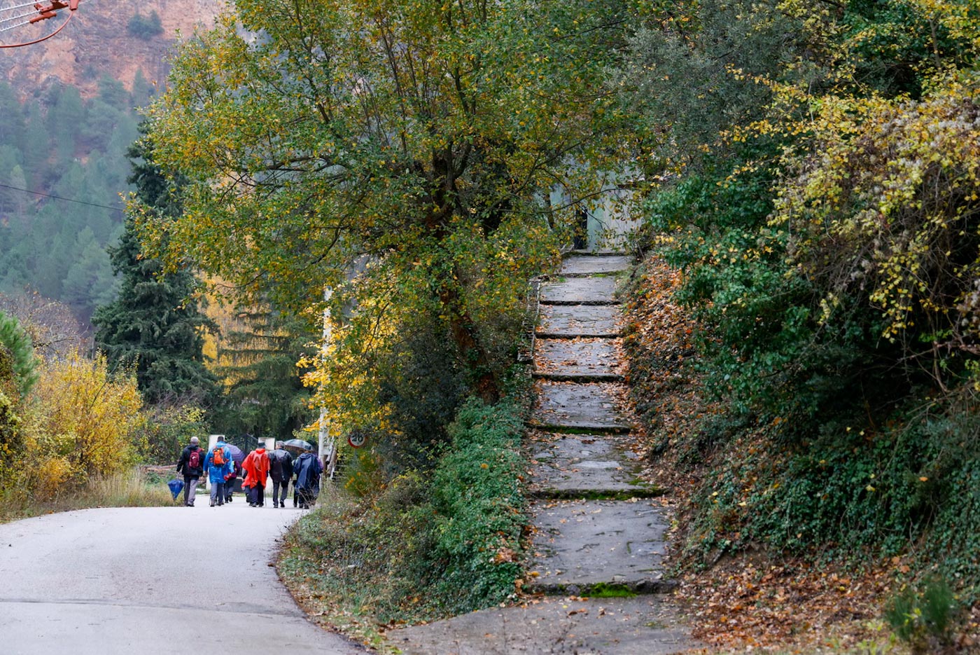 Llegarían al pueblo con el cielo cubierto y algo de llovizna. Tras el café volverían al autobús que les desplazaría hasta el “empalme”, un cruce de carreteras frente al Masegosillo, donde se dividen el PR-AB 23 y el PR AB-24, que se dirigen hacia Riópar y la Cañada del Provencio.