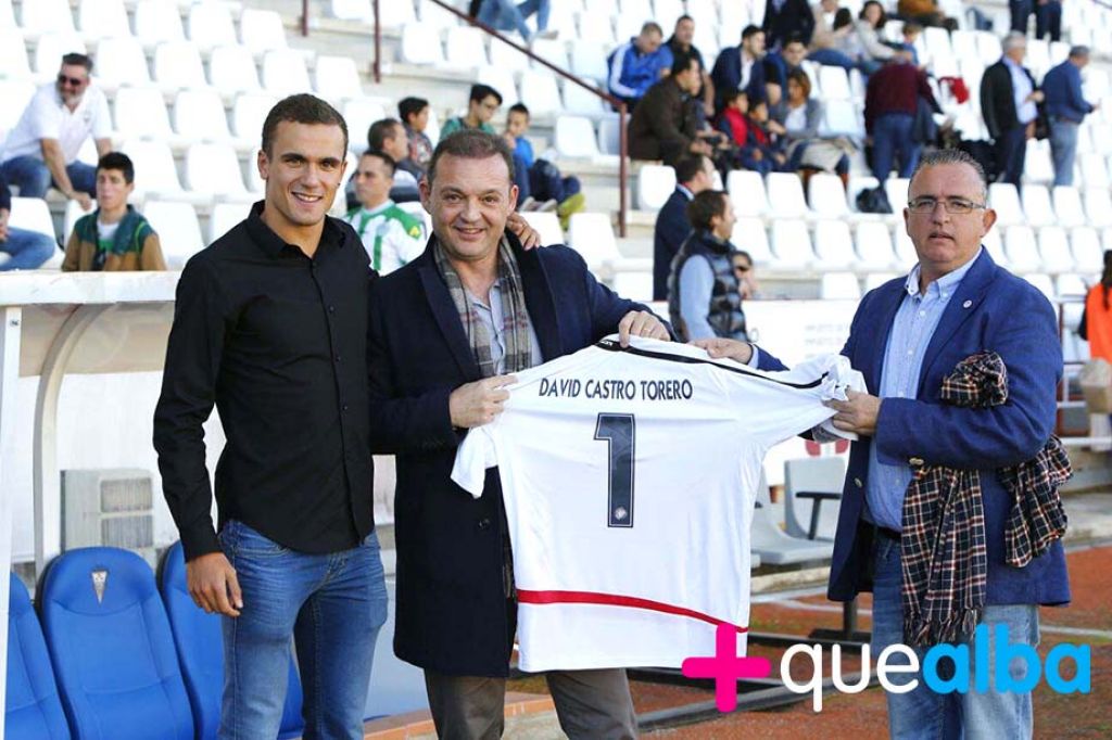 Dentro del programa de homenajes y reconocimientos que desarrolla el club, El Albacete con Albacete, este domingo el aplauso del Carlos Belmonte el triatleta rodense David Castro. Antes, el presidente del Alba, José Miguel Garrido, y el portavoz del Consejo, Luis Castelo, le entregaban una camiseta del Alba con su nombre y «torero», que es como le llaman en las carreras.