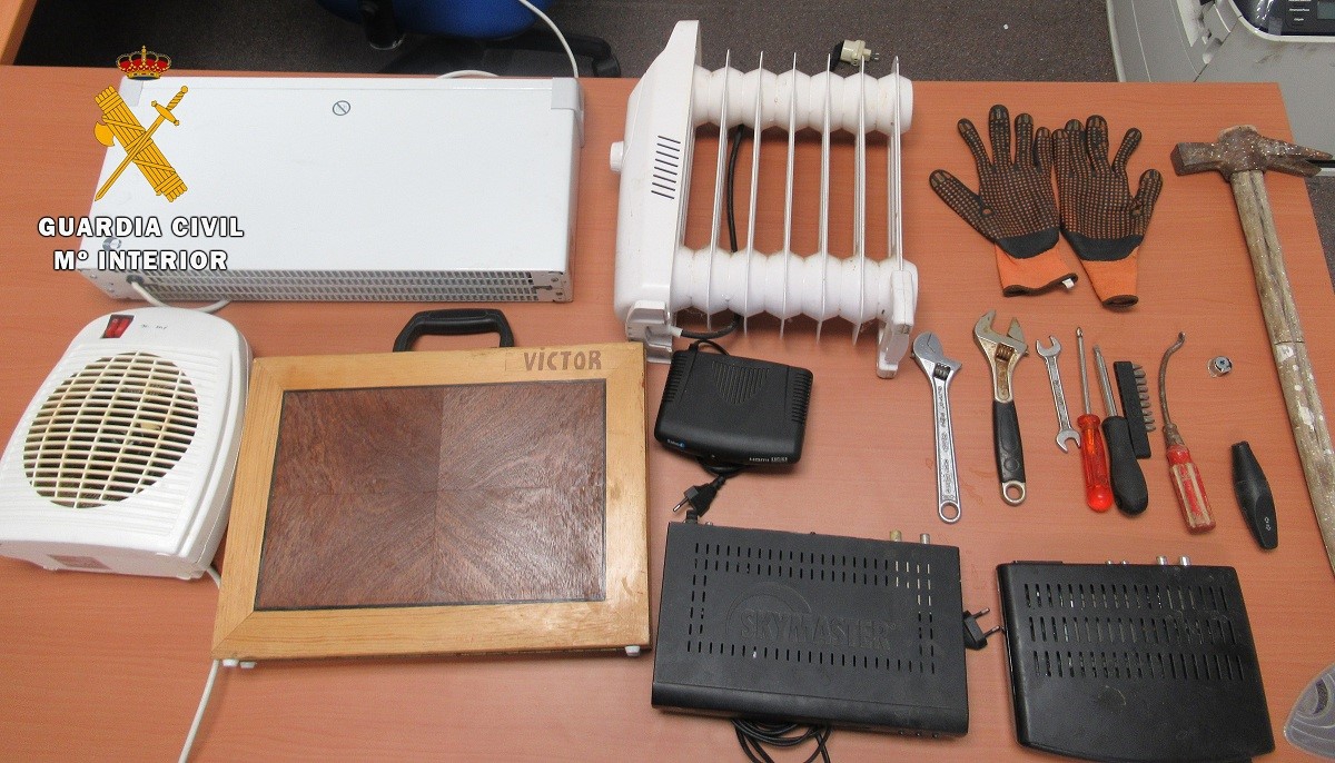 Durante este registro la Guardia Civil consiguió recuperar la mayoría de los efectos sustraídos en los robos, entre ellos un colchón, varios radiadores eléctricos y aparatos de TDT. También fueron intervenidas 15 dosis de heroína, 24 gramos de marihuana, medicamentos utilizados para adulteración de la heroína así como otros útiles y efectos relacionados con el tráfico de estupefacientes.