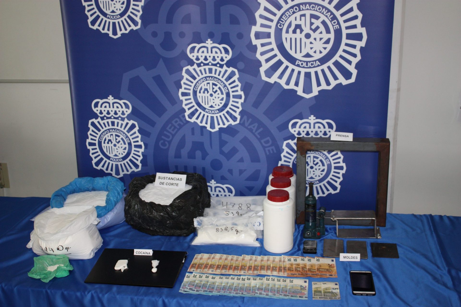 En el registro domiciliario posterior, dentro del trastero que tenía alquilado en un céntrico edificio de la capital, se encontró un completo laboratorio para adulterar cocaína, donde se decomisaron diversos efectos y quince kilos de productos para tal fin.