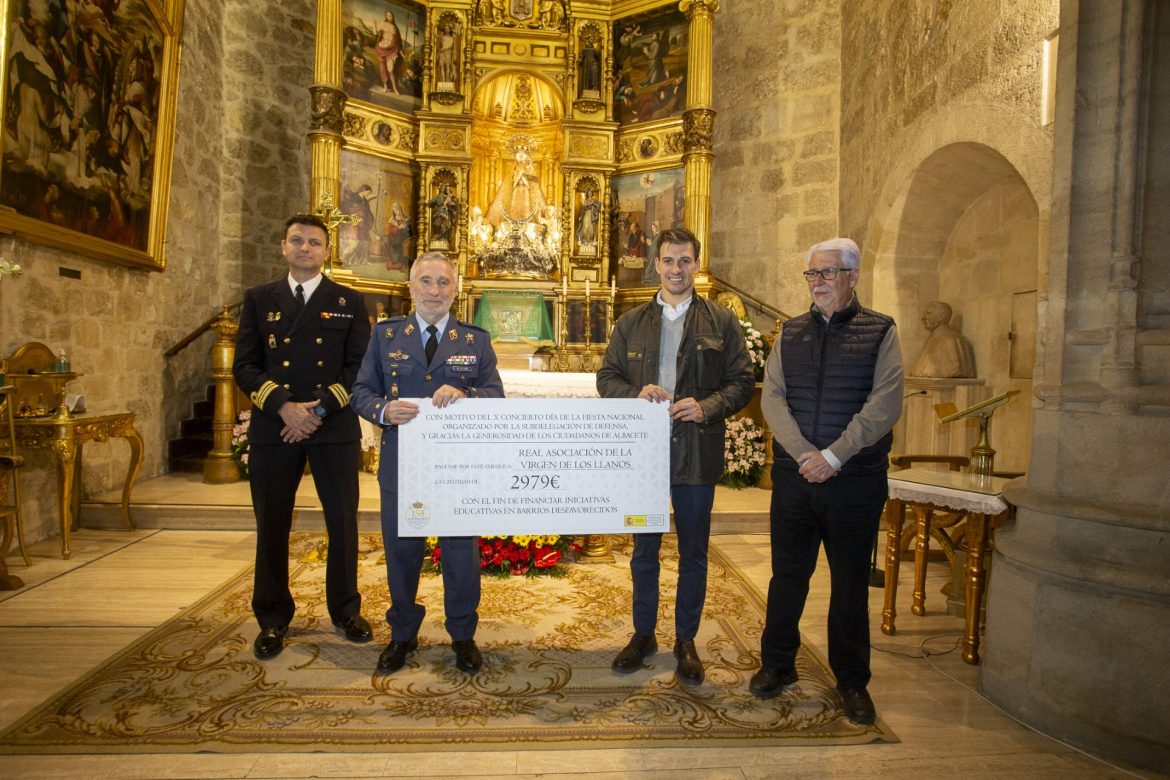 Con motivo del X concierto “Día de la Fiesta Nacional” organizado por la Subdelegación de Defensa y gracias a la generosidad de los ciudadanos de Albacete, el pasado día 12 de noviembre a las 19,15 horas, tuvo lugar en la capilla de la Virgen de los Llanos en la Santa Iglesia Catedral de Albacete, el acto de entrega del cheque conmemorativo del dinero recaudado en el X Concierto.