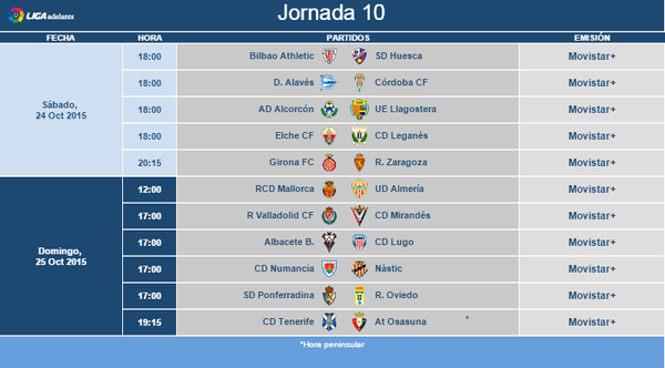 El partido entre el Albacete Balompié y el Lugo, de la jornada 10, se jugará el domingo 25 de octubre, a las 17.00 horas, según acaba de anunciar la Liga.