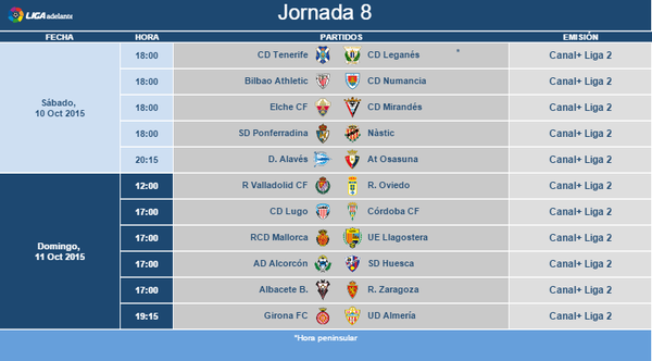 El partido de la jornada 8, entre el Albacete Balompié y el Zaragoza, se jugará el domingo 11 de octubre a las 17.00 horas, en el Carlos Belmonte