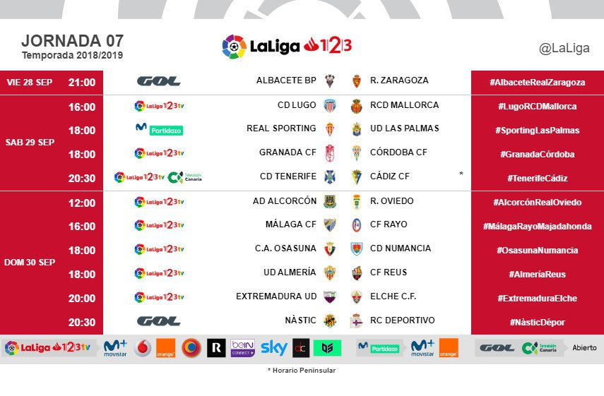 35 El Albacete-Zaragoza se jugará el viernes 28 de septiembre, a las nueve de la noche, televisado por Gol.