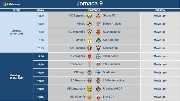 El Osasuna-Albacete Balompié de la jornada 9 se jugará el sábado 17 de octubre, a las 20.15 horas, según el horario que ha hecho público la Liga.