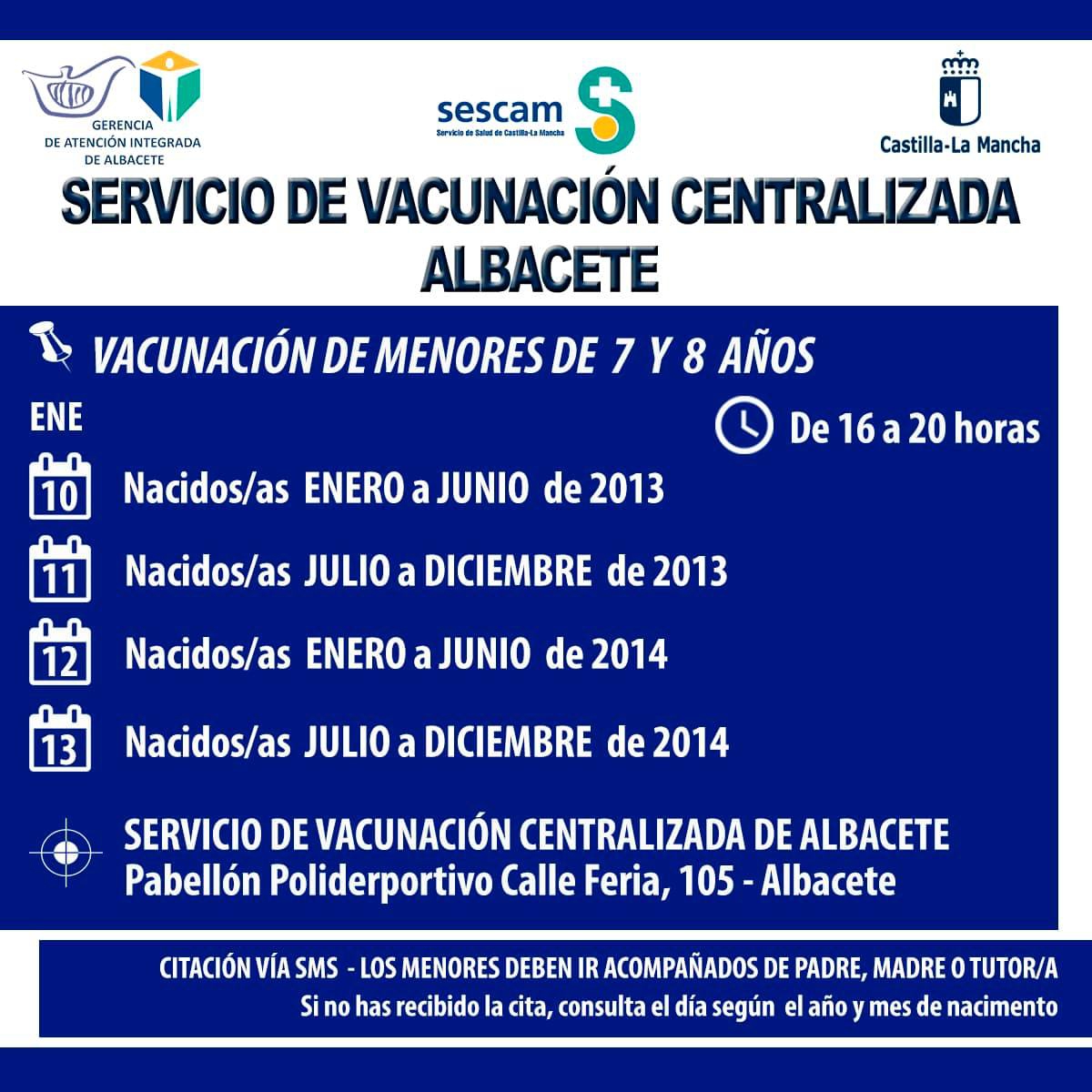 Llega la vacunación de menores de 7 y 8 años en el Servicio de Vacunación Centralizada de Albacete (Pabellón Polideportivo Feria), para Albacete Capital.