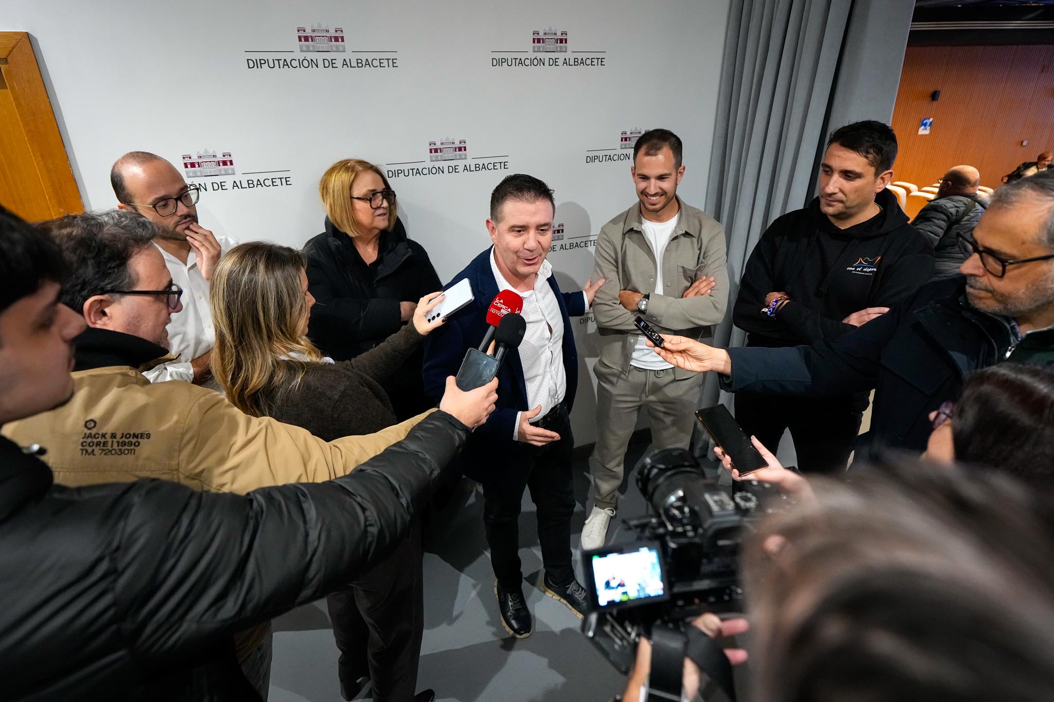 En su comparecencia han estado acompañados por Ana Arcos, director de Relaciones Institucionales de la empresa Arcos; así como el vicepresidente de la Diputación y responsable del área Económica, Fran Valera; y el diputado de Deportes, Dani Sancha.