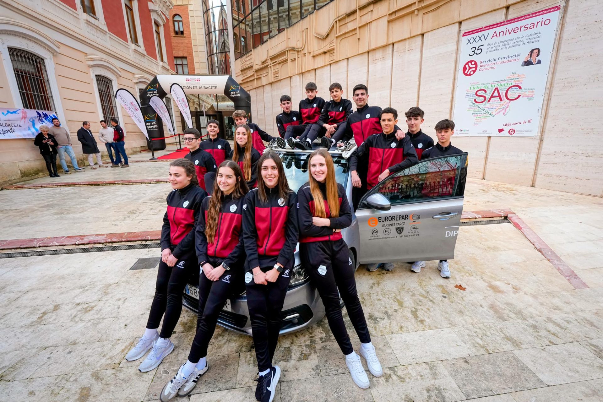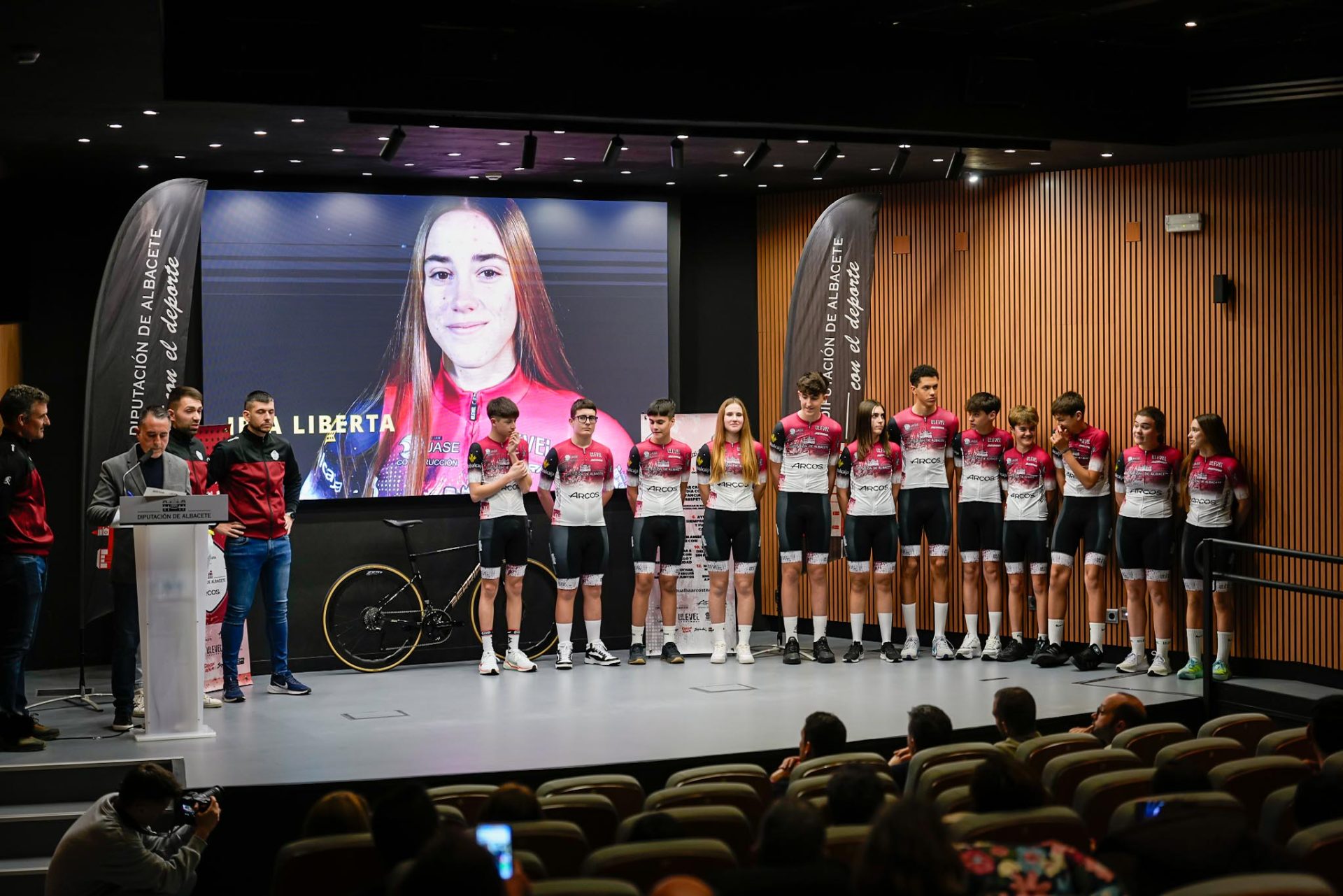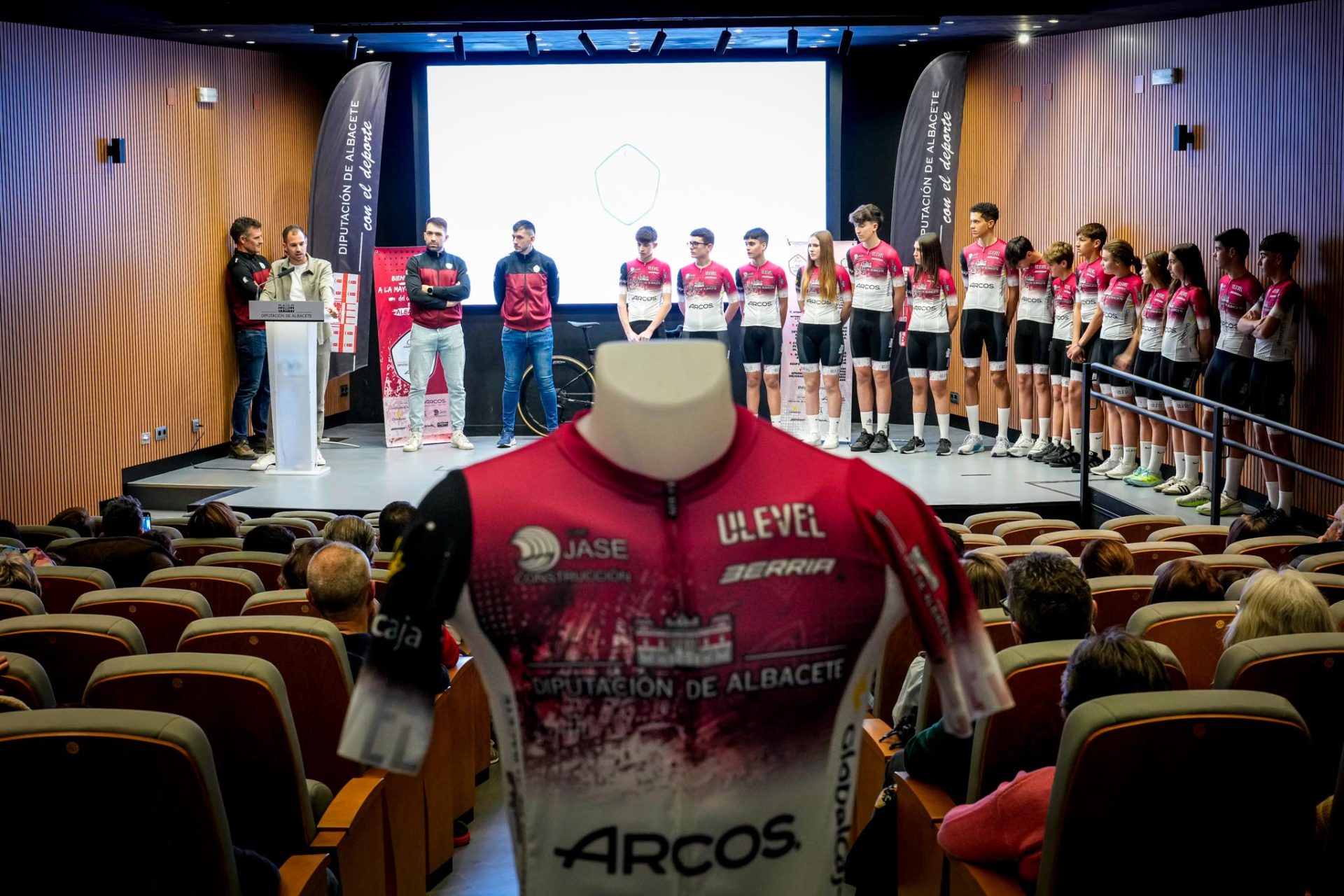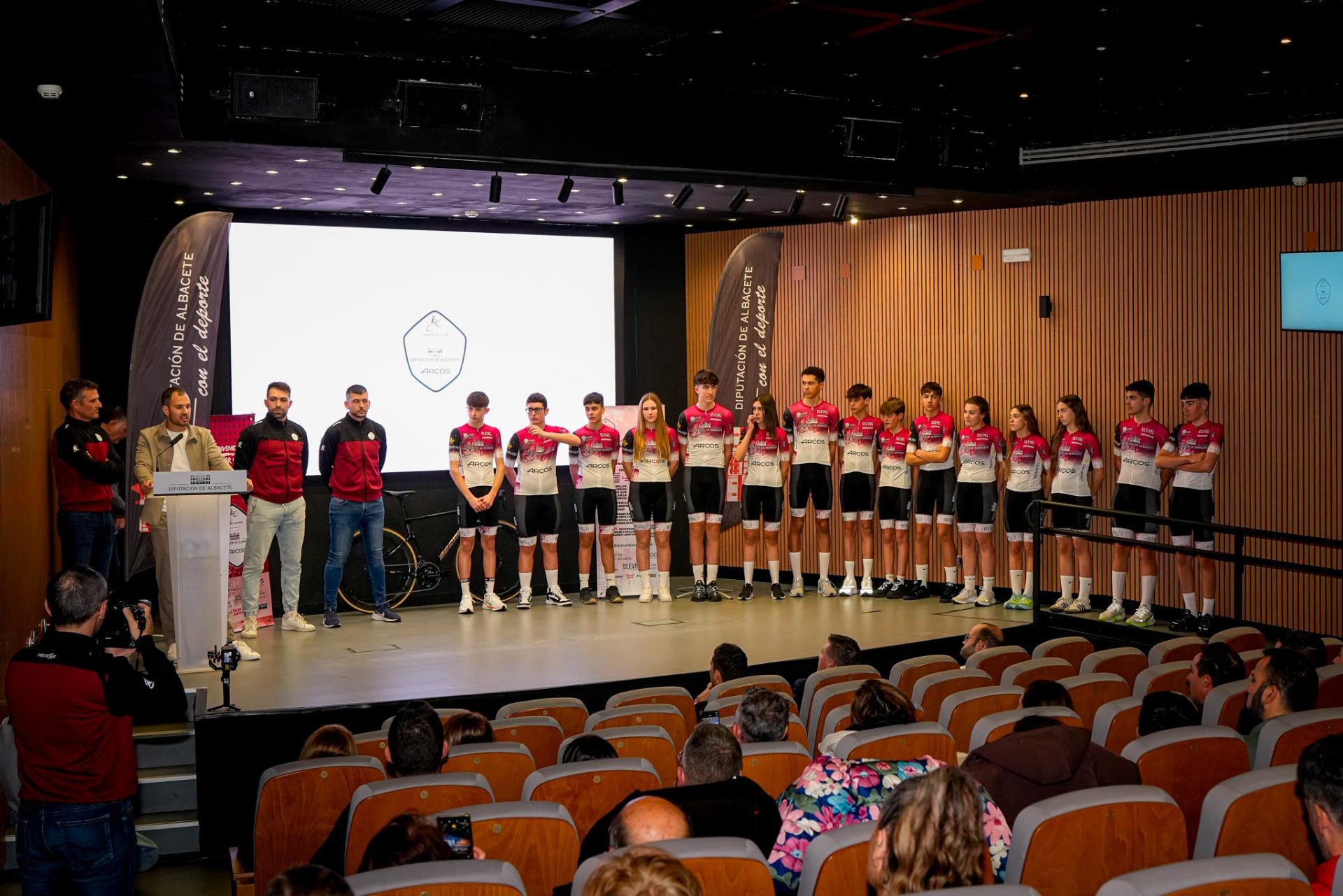 La Diputación Provincial se ha vestido hoy de gala para presentar al equipo de ciclismo cadete Dipualba Arcos Team, iniciatia de esta institución con el patrocinio de la empresa Arcos Albacete.