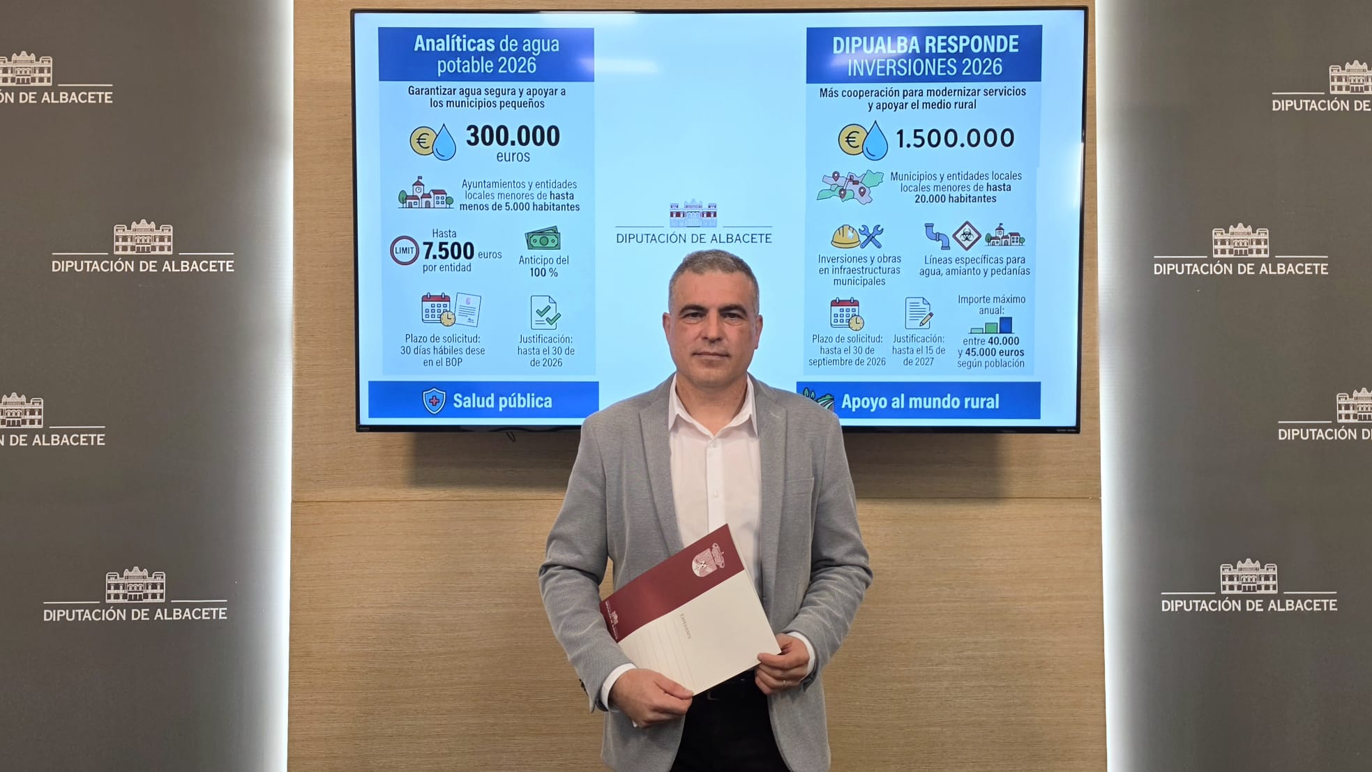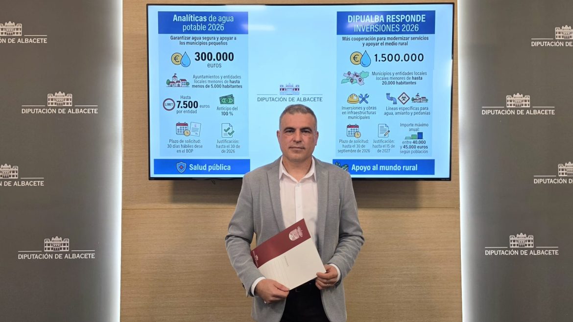 Además de esta convocatoria específica para analíticas del agua potable, la institución provincial mantiene otras líneas de actuación en materia hídrica e inversiones municipales. En ese contexto, Calvo ha recordado que dentro del programa Dipualba Responde Inversiones 2026 se ha incorporado una dotación específica para actuaciones relacionadas con agua y amianto., con una una dotación específica de 1.500.000 euros destinada a ayuntamientos y entidades locales menores de la provincia con población inferior a 20.000 habitantes.