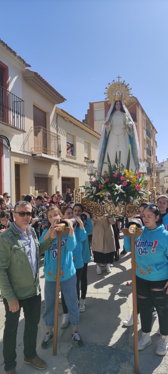 La localidad de Valdeganga ha vivido en esta mañana de Pascua y después de dos años, una emocionada y brillante procesión del encuentro de Resurrección, la Virgen del Rosario, patrona de Valdeganga ha salido de nuevo esta mañana radiante al encuentro con su Santísimo Hijo Resucitado.