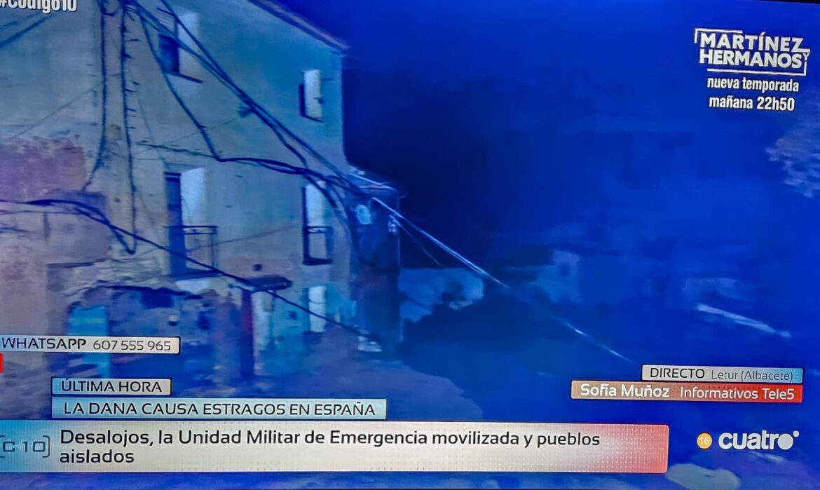 El programa Código 10, de Cuatro, está durante esta noche en director en Letur, donde han relatado cómo dos de los desaparecidos -el Gobierno regional ha informado que hay seis personas no localizadas- son una pareja que residía en una vivienda que ha quedado devastada por la riada.