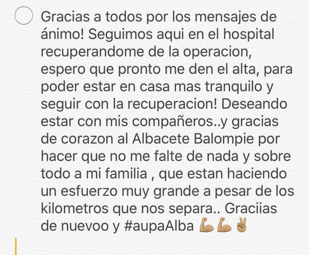 Edu Ramos ha publicado esta mañana un mensaje en su cuenta de Twitter en el que indica que sigue ingresado, tras ser operado el viernes de apendicitis, aunque confía en poder ir pronto a casa. Da las gracias por los apoyos recibidos.