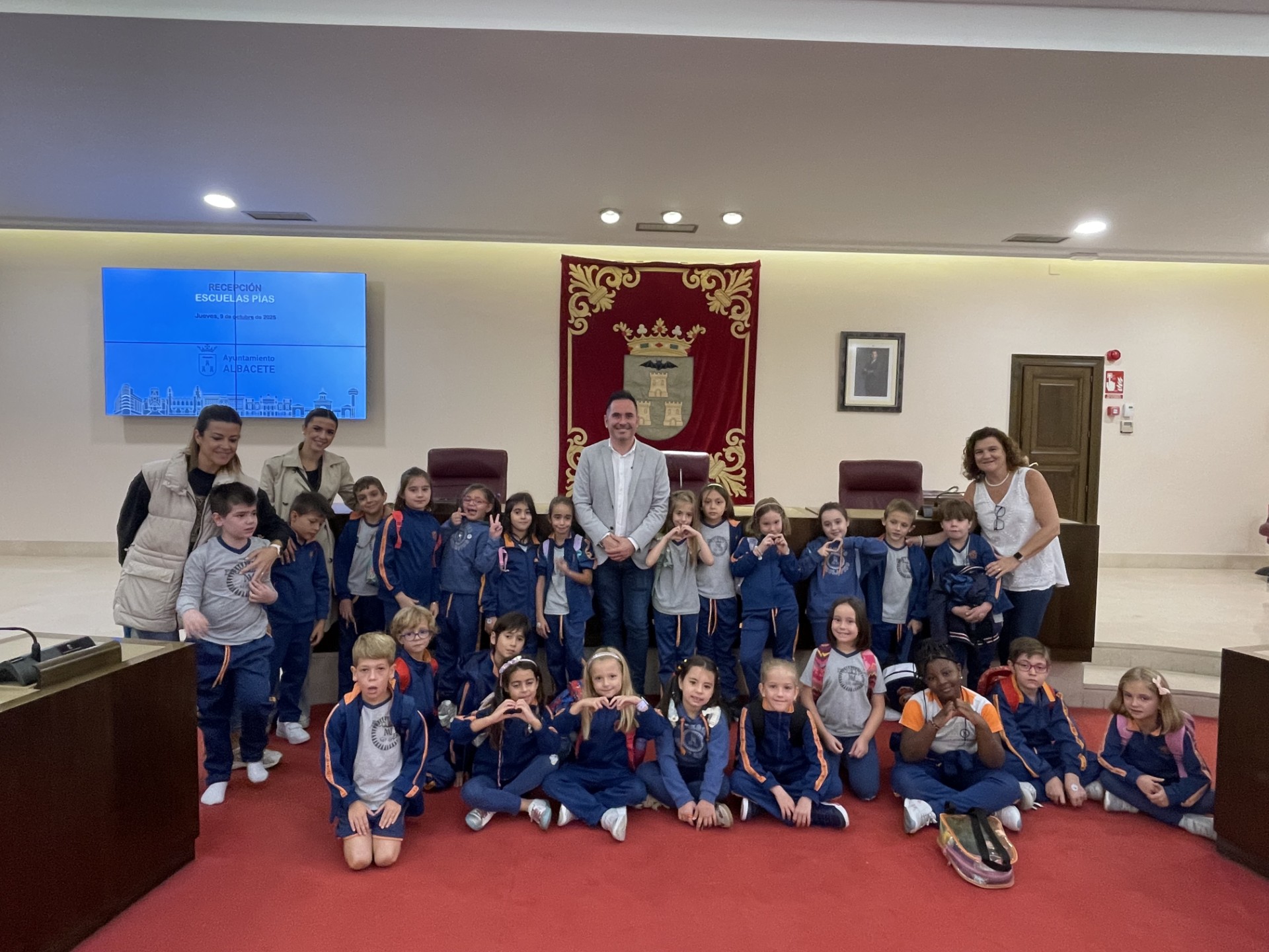 El alcalde de Albacete, Manuel Serrano, y el concejal de Educación, Pascual Molina, han recibido en el Ayuntamiento a dos grupos de alumnos y alumnas del colegio Escolapios, acompañados de sus profesores.