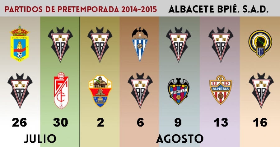 Arranca este sábado, 26 de julio, el primero de los amistosos programados por el Albacete Balompié para esta pretemporada. Un encuentro que se disputará en La Gineta, contra el equipo local, uno de los conjuntos de Tercera que más se ha reforzado para el nuevo curso, y donde los de Luis César intentarán ganar antes de comenzar a medirse hasta a cuatro equipos de Primera -Granada, Almería, Elche y Levante, que visitarán el Belmonte-. El Alba se desplazará también en esta pretemporada hasta Alcoy y Alicante.