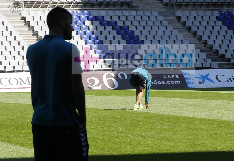 El Alba está ya en el Carlos Tartiere, donde a las 17.00 se mide al Oviedo. A los jugadores les hemos visto comprobando el estado del terreno de juego, donde anoche se disputó el España-Eslovaquia.