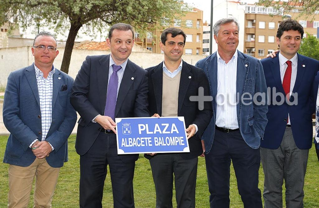 El Albacete Balompié ya tiene su plaza, así ha quedado acreditado en un acto con el alcalde, Javier Cuenca, entre otros representantes municipales, y el presidente del Alba, José Miguel Garrido, su míster, César Ferrando, y otros representantes.