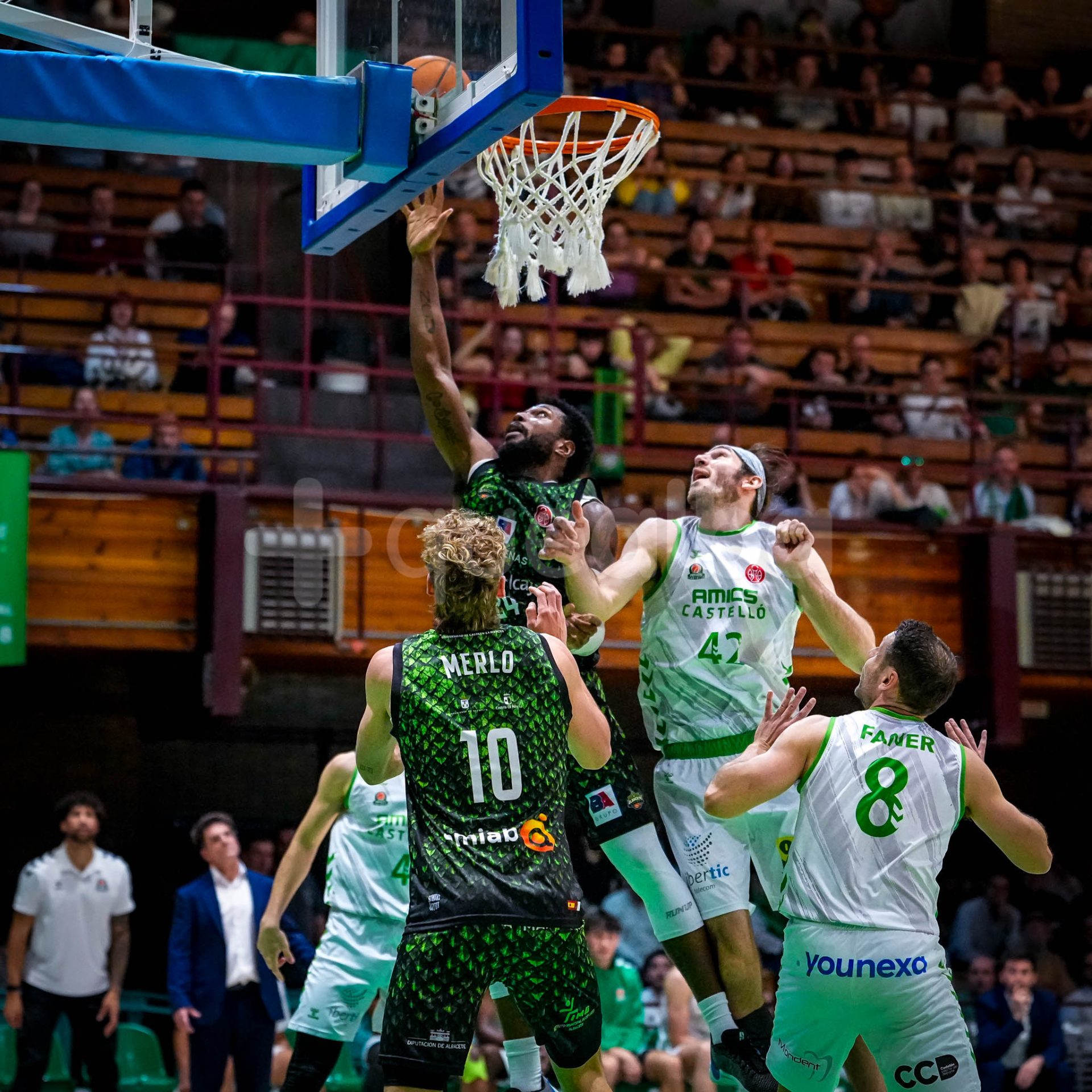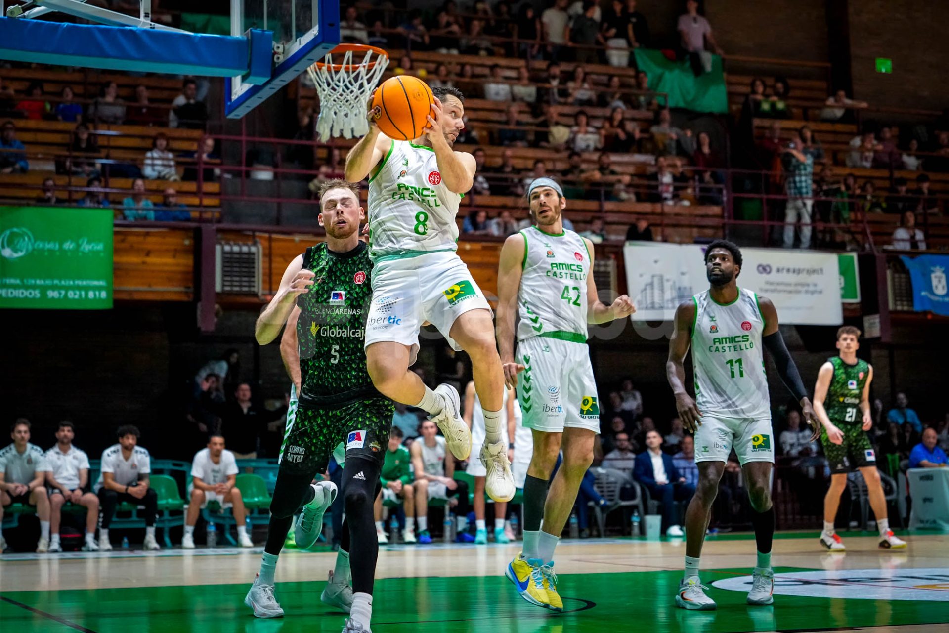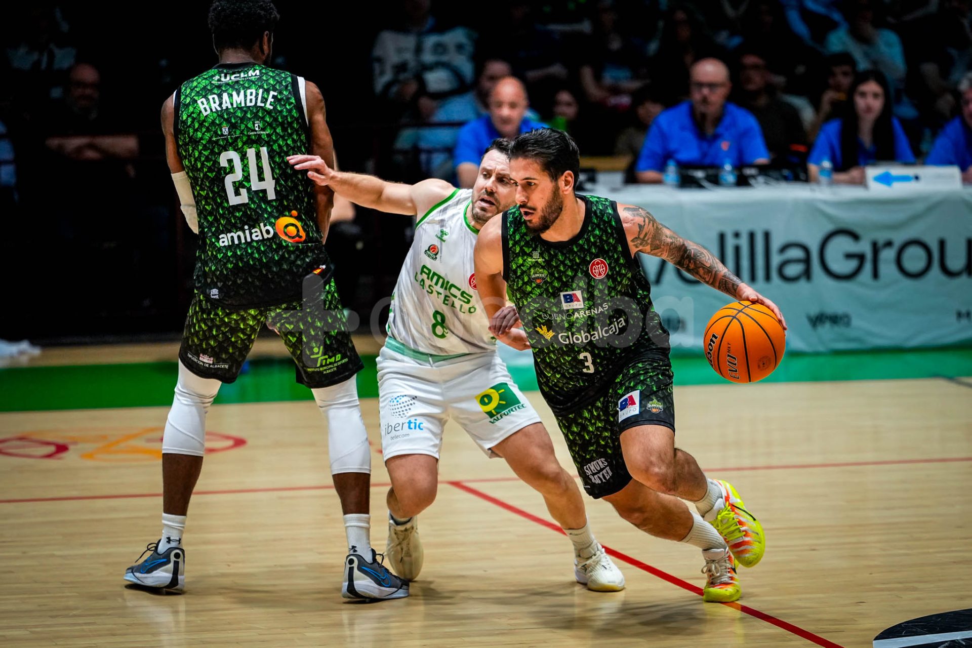 La intensidad estuvo presente desde el salto inicial hasta el último minuto en un Pabellón del Parque repleto de aficionados, volcados con su equipo. Pocos minutos le hicieron falta al Amics Castelló para tomar la delantera, pero el conjunto manchego respondió con carácter. Cada golpe visitante encontraba réplica local: un triple de Bramble (7-7) o una canasta de Muñoz (14-14) mantuvieron la igualdad. Incluso, gracias a una defensa sólida y a las aportaciones de Merlo desde el tiro libre y de Alan García, los locales lograron ponerse por delante. Sin embargo, en los últimos segundos del cuarto, Russell igualó el marcador (17-17).