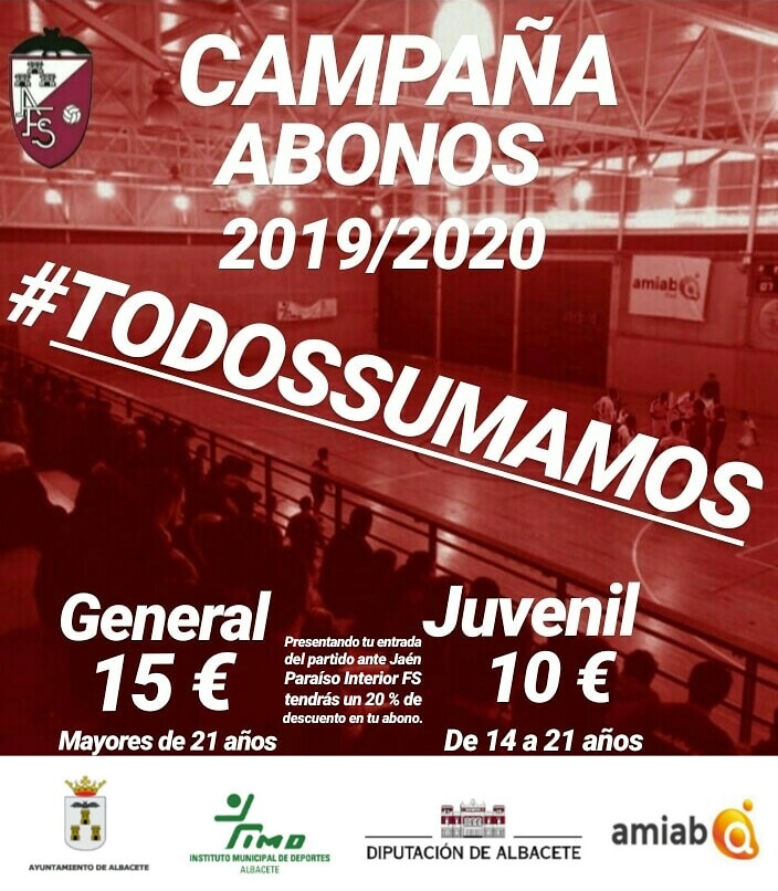 El Albacete Fútbol Sala ha lanzado su campaña de abonos, con el lema: «TODOS SUMAMOS» «desde jugadores, afición, colaboradores, toda la sociedad albaceteña en definitiva, que esperemos que se sumen a nuestro club en esta temporada tan ilusionante», destacan.