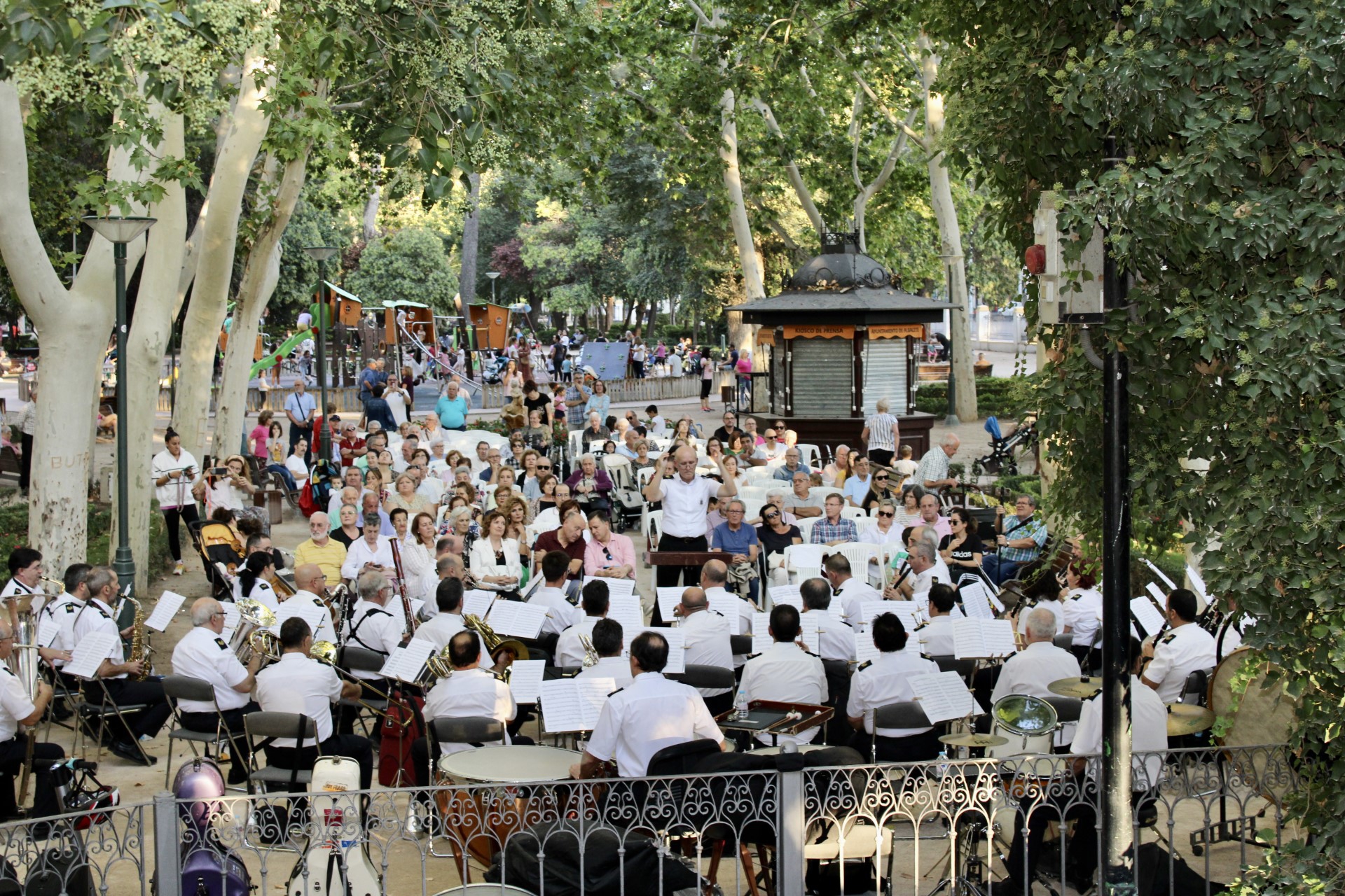 El concierto, celebrado en los Jardinillos bajo la dirección de Miguel Vidagany, ha tenido según Manuel Serrano “el alto nivel a que nos tiene acostumbrados nuestra Banda Sinfónica Municipal. Hemos quiero llevar esta oferta musical a los barrios para acercar así la música y la cultura a todos los ciudadanos. La respuesta de los vecinos ha sido como siempre ejemplar, demostrando que la cultura cercana y accesible es muy valorada por los albaceteños”.