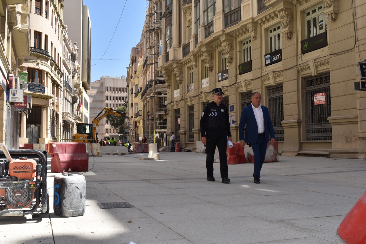 Emilio Sáez ha señalado que el proyecto de transformación del entro se encuentra “dentro de los plazos previstos”, añadiendo que “los trabajos entre Tinte y Altozano estarán concluidos en junio”. El alcalde, que ha estado acompañado del intendente jefe de la Policía Local, Pascual Martínez, ha visitado diversos establecimientos comerciales, indicando posteriormente que “estamos convencidos de que esta zona de la capital se verá revitalizada desde el punto de vista comercial”.