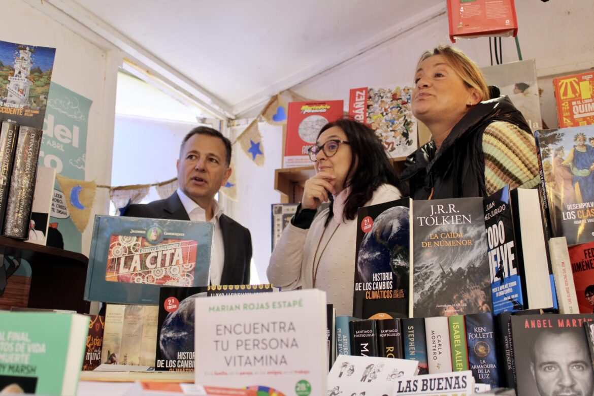 Manuel Serrano ha visitado algunas de las casetas de los libreros albaceteños, y ha destacado las actividades de promoción de la lectura que se llevan a cabo de manera continuada desde el Ayuntamiento y a través de la red de bibliotecas municipales, como los cuentacuentos infantiles, que han llegado durante este curso a 14.000 alumnos