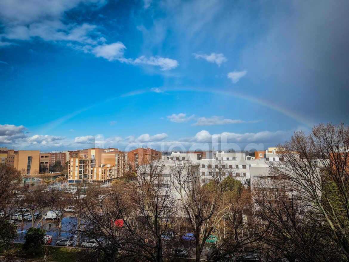 El arco iris también ha querido estar este sábado de Carnaval en la ciudad de Albacete. Tras una tormenta de unos 15 minutos, con algo de granizo, que ha dejado la borrasca Karlotta que estos días azota la Península, el arco iris se podía ver sobre la capital.