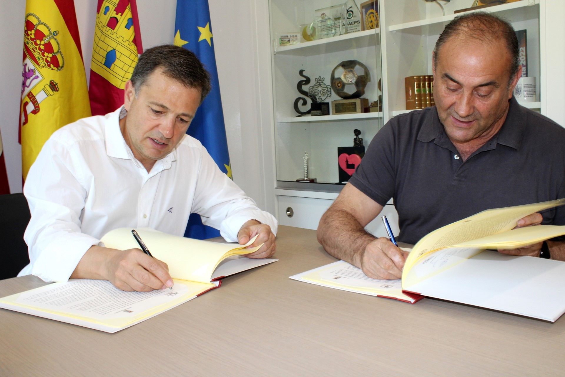 El alcalde Manuel Serrano y el presidente de la Fundación para el Desarrollo de la Cuchillería (FUDECU), José Luis Abiétar Ruiz, han suscrito un convenio de colaboración por el que el Ayuntamiento aportará 60.000 euros para el desarrollo de los fines de la Fundación.