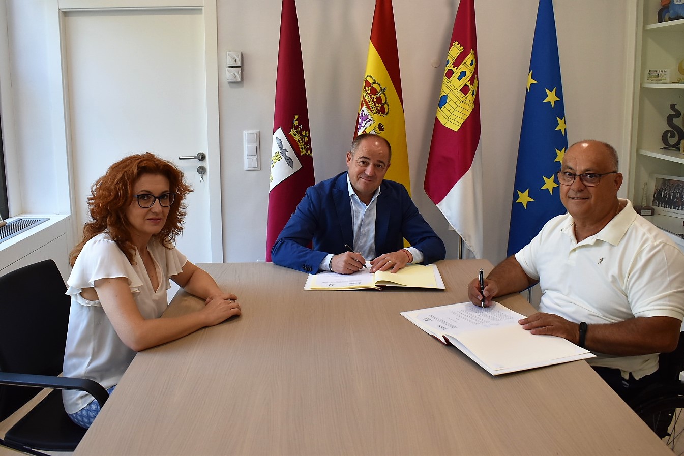 El alcalde de Albacete, Emilio Sáez, y el presidente de la Federación de Asociaciones de Personas con Discapacidad Física y Orgánica de Albacete (Cocemfe), Marcelino Escobar, han firmado un convenio de colaboración para la creación de la Oficina de Accesibilidad Universal, pieza fundamental en la ejecución del Plan de Accesibilidad Universal ‘Albacete para las Personas’.