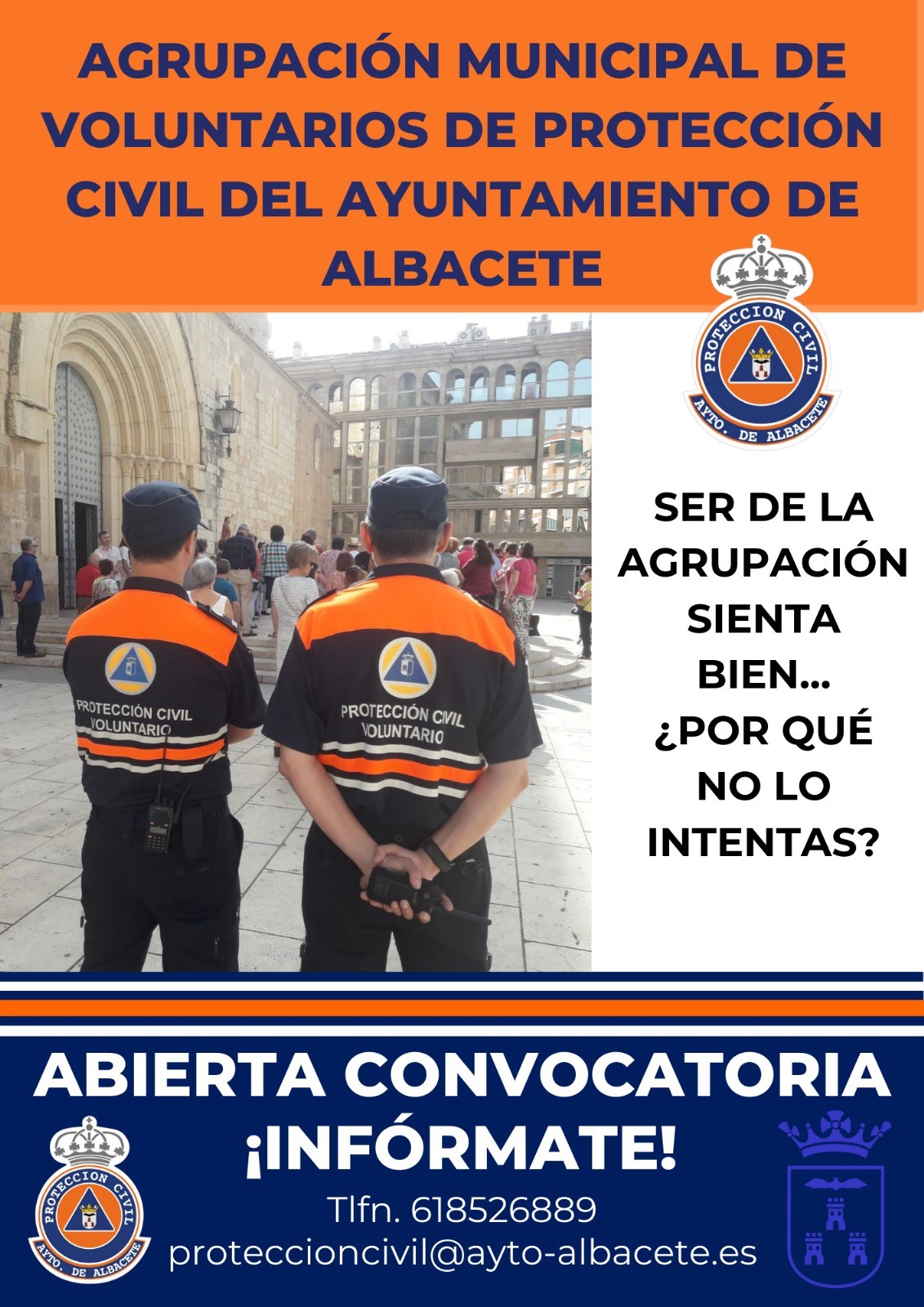 El concejal de Seguridad, Alberto Reina, ha animado a los albaceteños a optar a ser voluntarios de Protección Civil, “una institución básica para la seguridad de la ciudad y que se basa en la participación altruista y comprometida de los ciudadanos, siempre en coordinación con la Policía Local, los Bomberos y el resto de fuerzas y cuerpos de seguridad. Desde el Ayuntamiento valoramos la Agrupación de Voluntarios e intentamos que tenga los medios materiales y humanos precisos, ofreciendo a sus miembros una formación permanente y contando siempre con su valiosa contribución, especialmente en las celebraciones festivas y grandes concentraciones”.