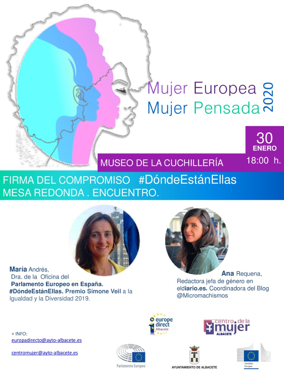 La firma de este manifiesto se enmarca en un acto organizado conjuntamente por el Centro de Información Europa Directo y el Centro de la Mujer, integrados en las concejalías de Atención a las Personas e Igualdad y Mujer, respectivamente, bajo el título ‘Mujer Europea. Mujer Pensada’, que contempla una Mesa Redonda, que dará comienzo tras la rúbrica, en la que participarán María Andrés Marín, que el pasado año recibió el premio ‘Simone Veil’ a la Igualdad y a la Diversidad, precisamente, por impulsar la iniciativa #DóndeEstánEllas; y Ana Requena, periodista muy vinculada a la ciudad de Albacete, que actualmente es redactora jefa de género de eldiario.es, colaboradora de La Mañana de TVE y fundadora y coordinadora del blog ‘Micromachismos’.