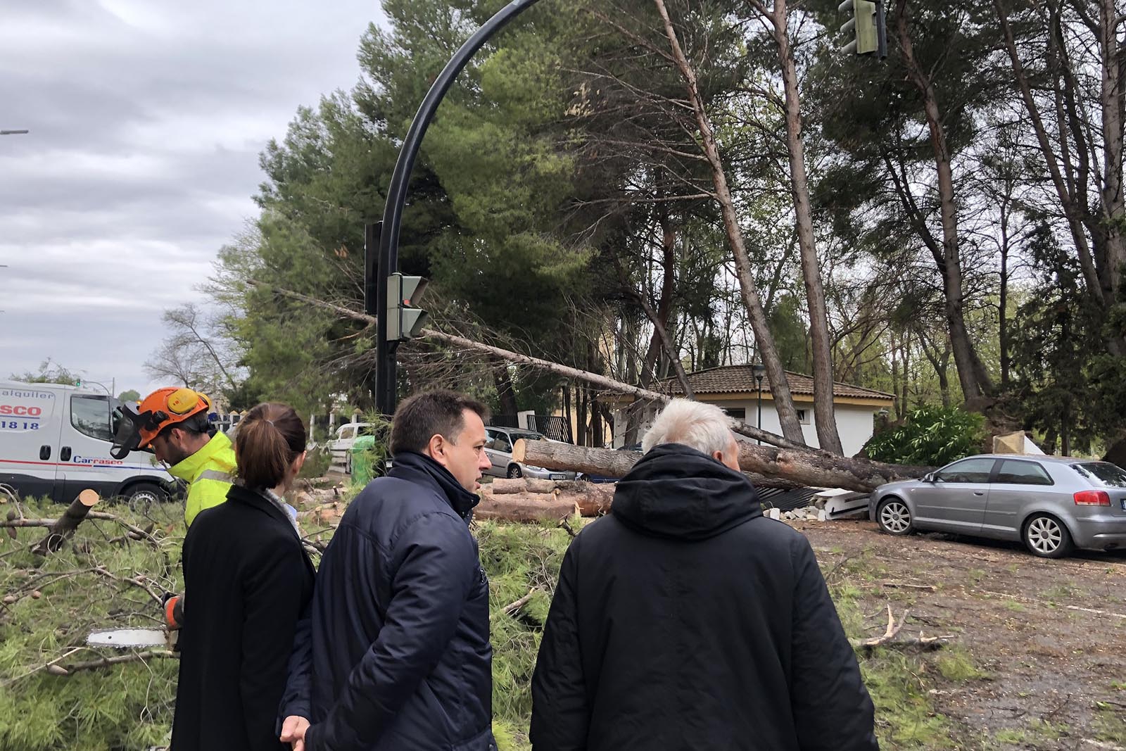 – El alcalde explica que la caída de los árboles se debe a la gran cantidad de lluvia caída en la capital en los últimos días reblandeciendo el terreno, junto a las fuertes rachas de viento