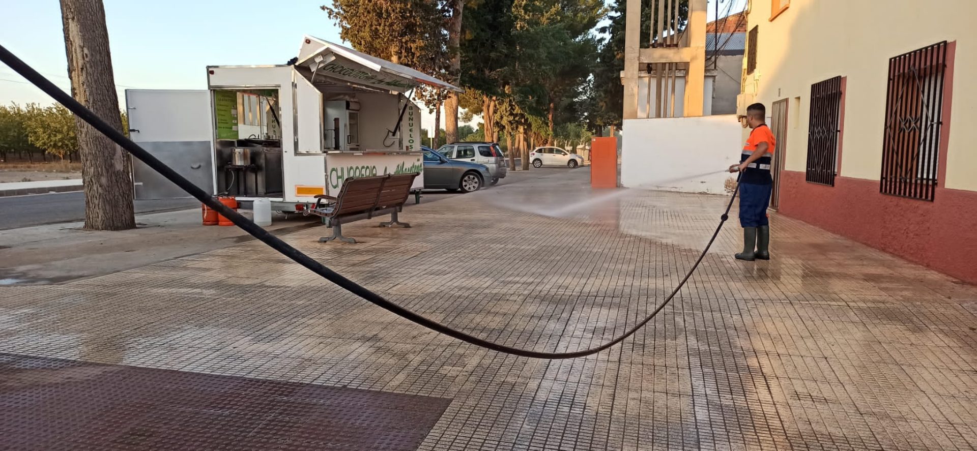 Los trabajos de limpieza viaria en la pedanía de Santa Ana se están intensificando en estos días, dado que la pedanía está celebrando sus fiestas patronales.
