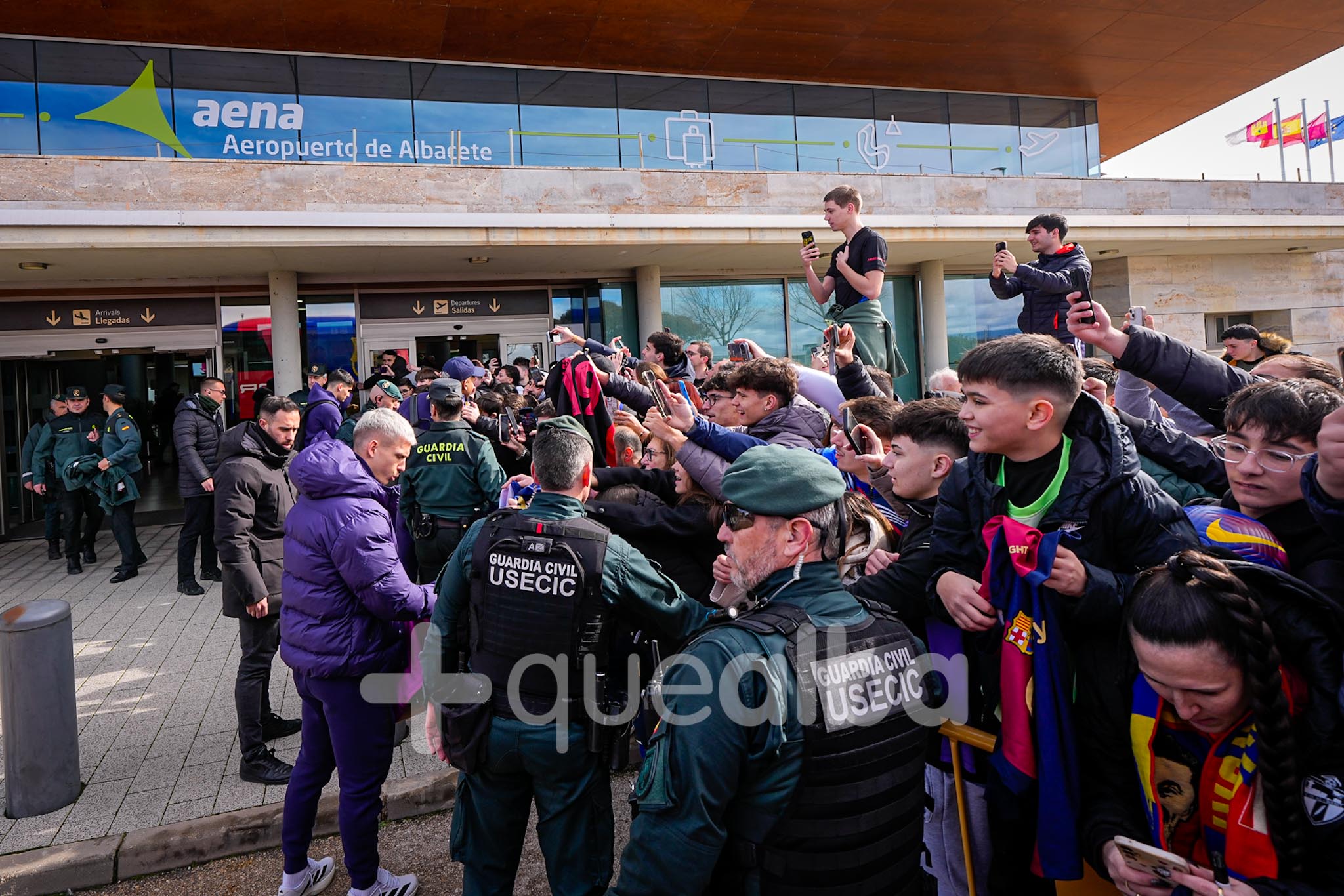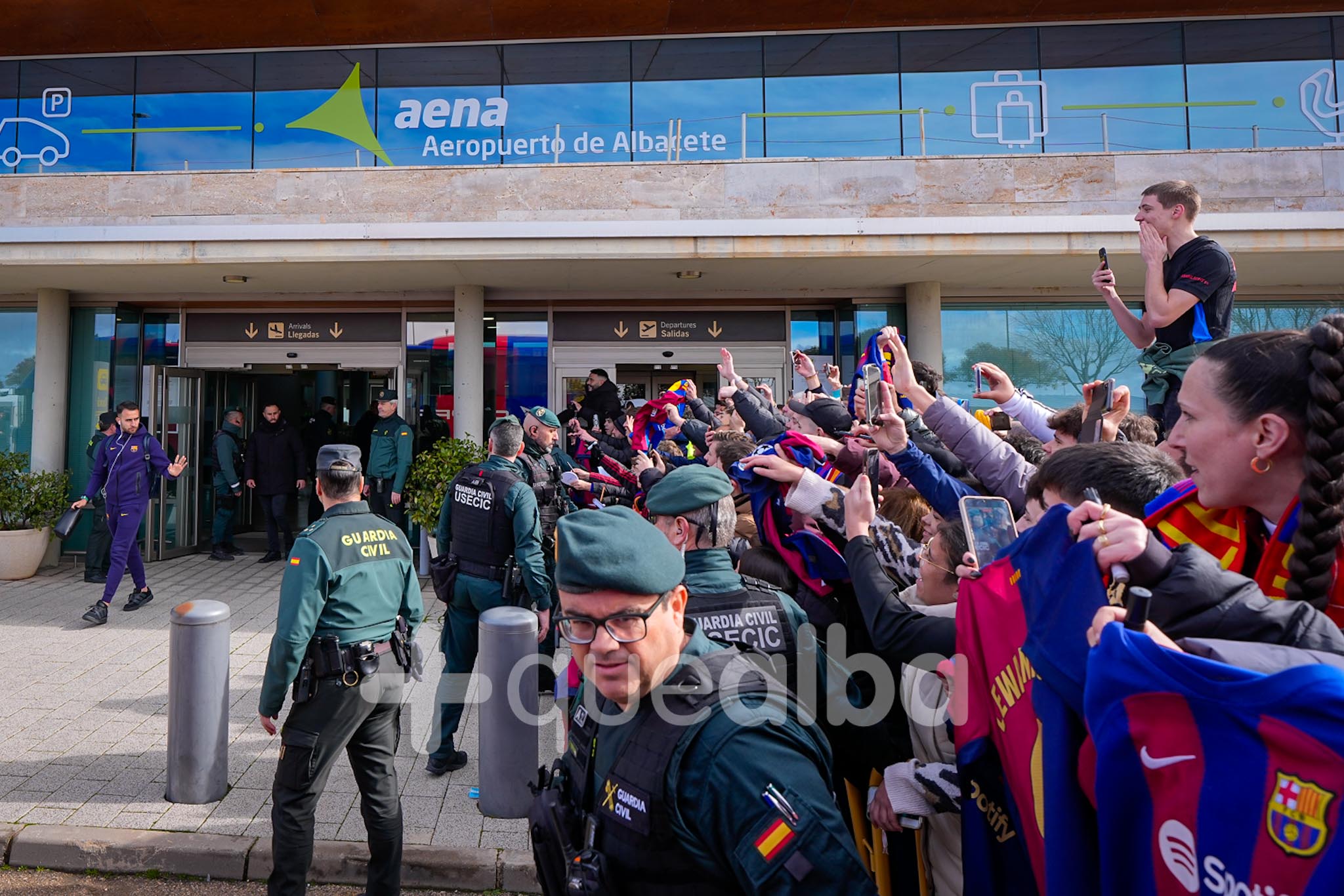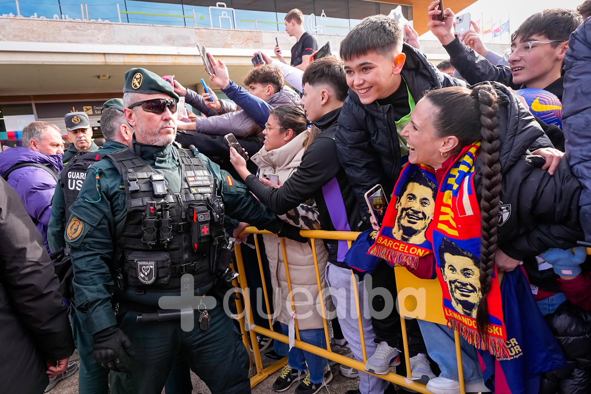 Cientos de aficionados esperaban al FC Barcelona a su llegada al aeropuerto de Albacete, donde Lewandowski y el entrenador blaugrana, Flick, han sido de los más accesible y Lamine Yamal era el único que salía al autobús sin hacer ningún gesto ni acercarse a los aficionados, cubierto con una gorra.